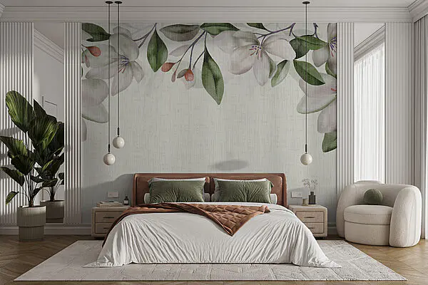 Fototapety Ľalie na pozadí vlnitého bieleho vzoru