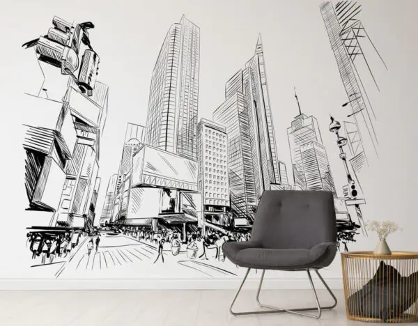 Fototapety Ulica s budovami a pouličným osvetlením