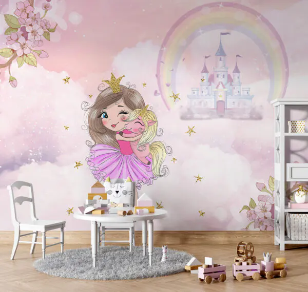 Fototapety Skupina zajačikov držiacich balóny na oblohe