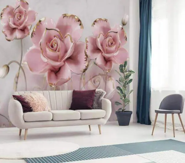 Fototapety Skupina ružových plameniakov v rybníku s kvetmi