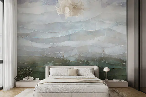 Fototapety Zelené listy na geometrickom mramorovom vzore