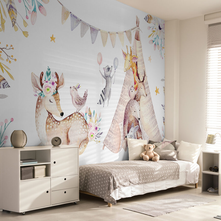 Je ideálna do dcérinej izby alebo akéhokoľvek detského priestoru, pôsobí ako objatie od prírody! Predstavte si, ako sa vaše dieťatko každé ráno prebúdza a máva mývalovi… alebo si rozpráva rozprávky pred spaním pod pozorným dohľadom žirafy a jeleňa. Je to ako mať kúsok lesa fantázie priamo doma – veľmi útulné a hrejivé. Jemné farby sa dokonale hodia k väčšine interiérov a vytvárajú pokojnú, ale hravú atmosféru. Jednoducho rozkošný!