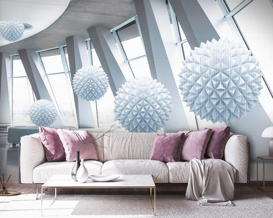 Predstavte si, že vstúpite do miestnosti, kde sa vo vzduchu vznášajú biele geometrické zázraky – to je skvelý námet na konverzáciu! Táto nástenná maľba s názvom „Biele gule zo stropu“ vnesie do každého priestoru nával modernej fantázie. Je to, ako keby niekto vzal kopu nadýchaných oblakov, dal im zábavný nový vzhľad a nechal ich tancovať po vašich stenách. 3D efekt pôsobí takmer magicky a určite ohromí vašich hostí. Je ideálny do salónika, kancelárie alebo trendy kaviarne, je čistý, elegantný a vyžaruje nenútenú atmosféru. Navyše, kto by nemiloval stenu, ktorá vyzerá, ako keby sa hrala s gravitáciou? Dodajte svojim stenám náboj, ktorý vyvoláva radosť a inšpiruje k malým sneniam!