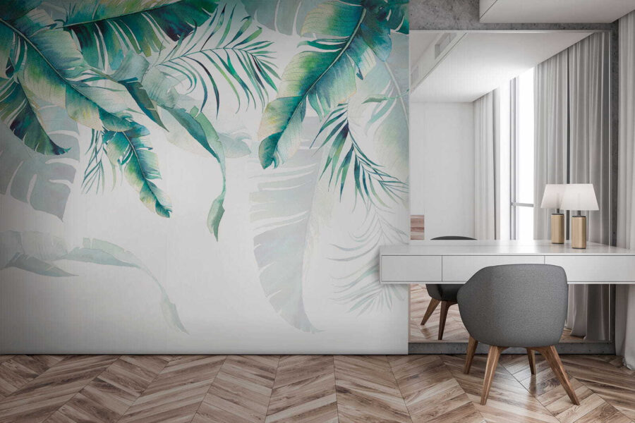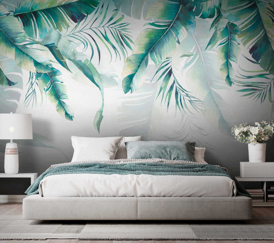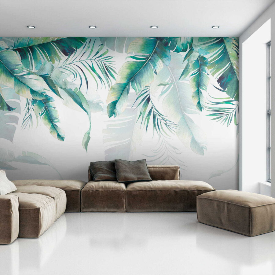 Dobre, predstavte si to: vstúpite do miestnosti… a bác! Prenesiete sa do sviežeho tropického raja. Táto fototapeta “Nástenné maľby Tropical Leaves” nie je ničím iným ako fascinujúcim. Je to, akoby sama matka príroda vzala do ruky akvarelový štetec a pustila sa do práce. Žiarivá zeleň a jemná modrá farba listov priam vyžaruje relaxáciu – ideálna do každého priestoru, ktorý potrebuje pokojný nádych.