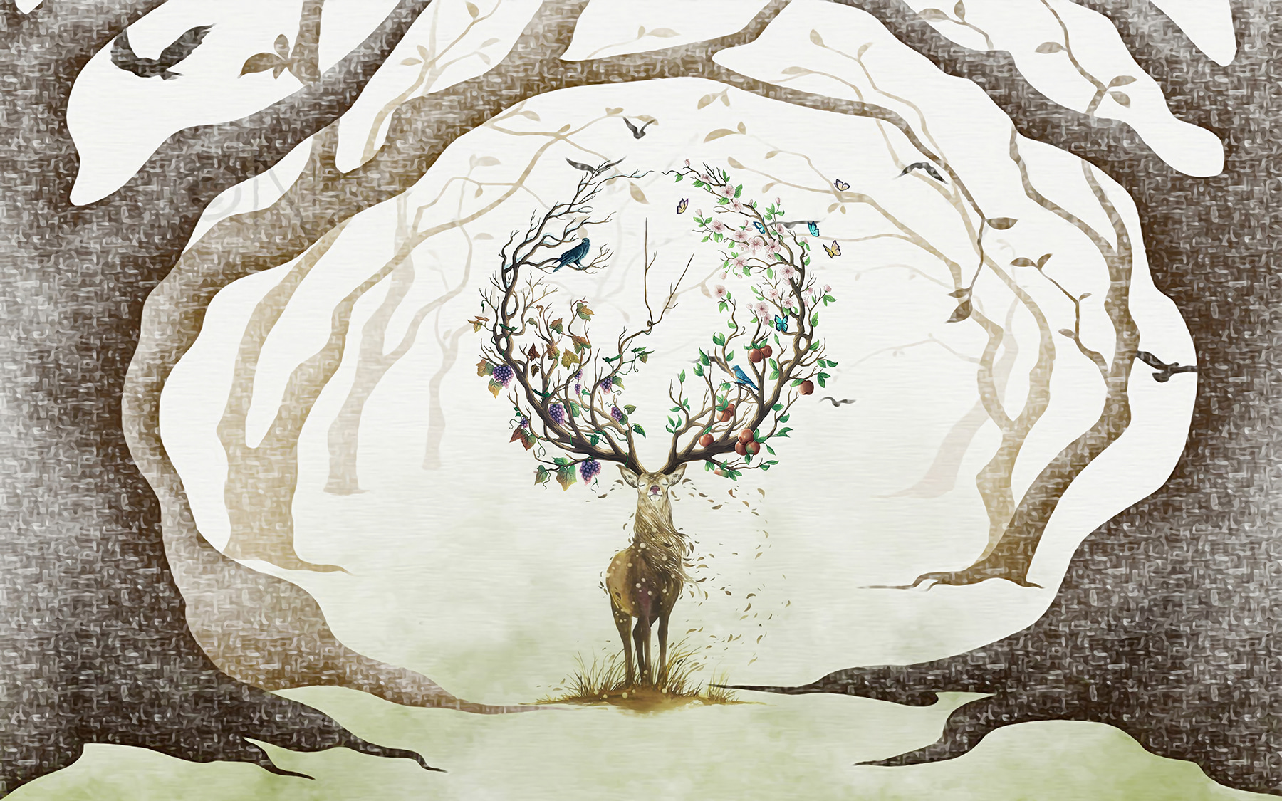 Fototapety Maľba jeleňa s konármi Fototapety Maľba jeleňa s konármi