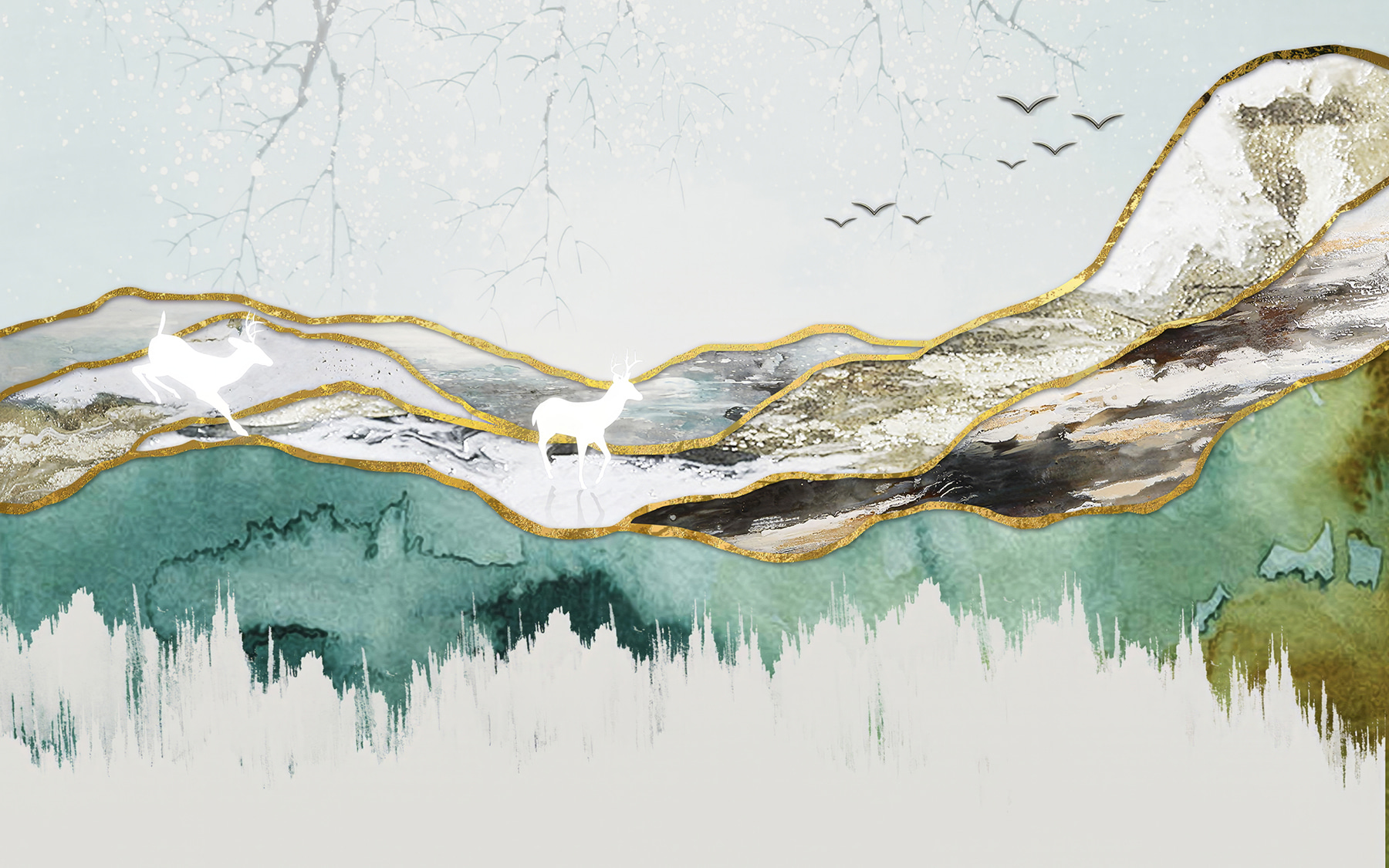 Predstavte si, že vstúpite do útulnej miestnosti zdobenej touto úžasnou nástennou maľbou jelena a majestátnych hôr. Je to ako priniesť kúsok prírody dovnútra. Pokojné farby a jemné krivky krajiny prirodzene vyvolávajú pokoj, vďaka čomu je ideálna do čitateľského kútika alebo na akékoľvek miesto, kde sa cení pokoj. Predstavte si, ako hostíte priateľov a ich oči sa rozžiaria, keď zbadajú toho umeleckého jeleňa, akoby sa pozeral do miestnosti. Táto tapeta nie je len dekoráciou, je to malý únik do prírody bez hmyzu. Či už ide o kúsok prírody alebo o náznak fantázie, táto tapeta má všetko.
