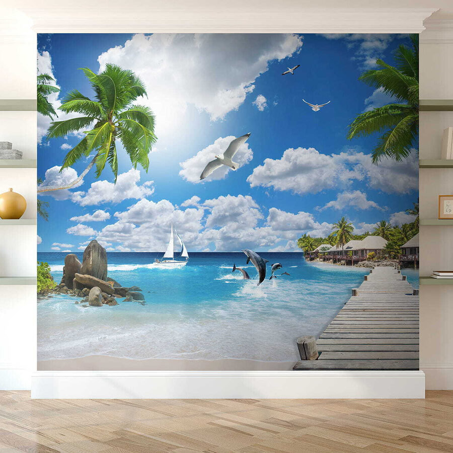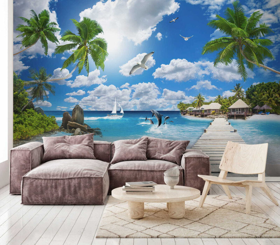 Predstavte si, že pri každom vstupe do miestnosti vstúpite do tropického raja. Táto úžasná nástenná maľba “Vták letiaci v oblakoch” vás rýchlo prenesie do dní zaliatych slnkom a jemného oceánskeho vánku. Žiarivá modrá a svieža zelená vás vtiahnu do seba ako chladivý nápoj v horúcom dni. Je ideálny na stenu, ktorá potrebuje trochu lásky, a vytvára pocit nekonečného leta. Predstavte si, ako sa zabávate s priateľmi alebo si len užívate pokojnú chvíľu – vdýchnite túto pokojnú atmosféru. Nie je to len dekorácia, je to pozvánka na únik z každodennosti a ponorenie sa do vlastného kúska zázraku prírody.
