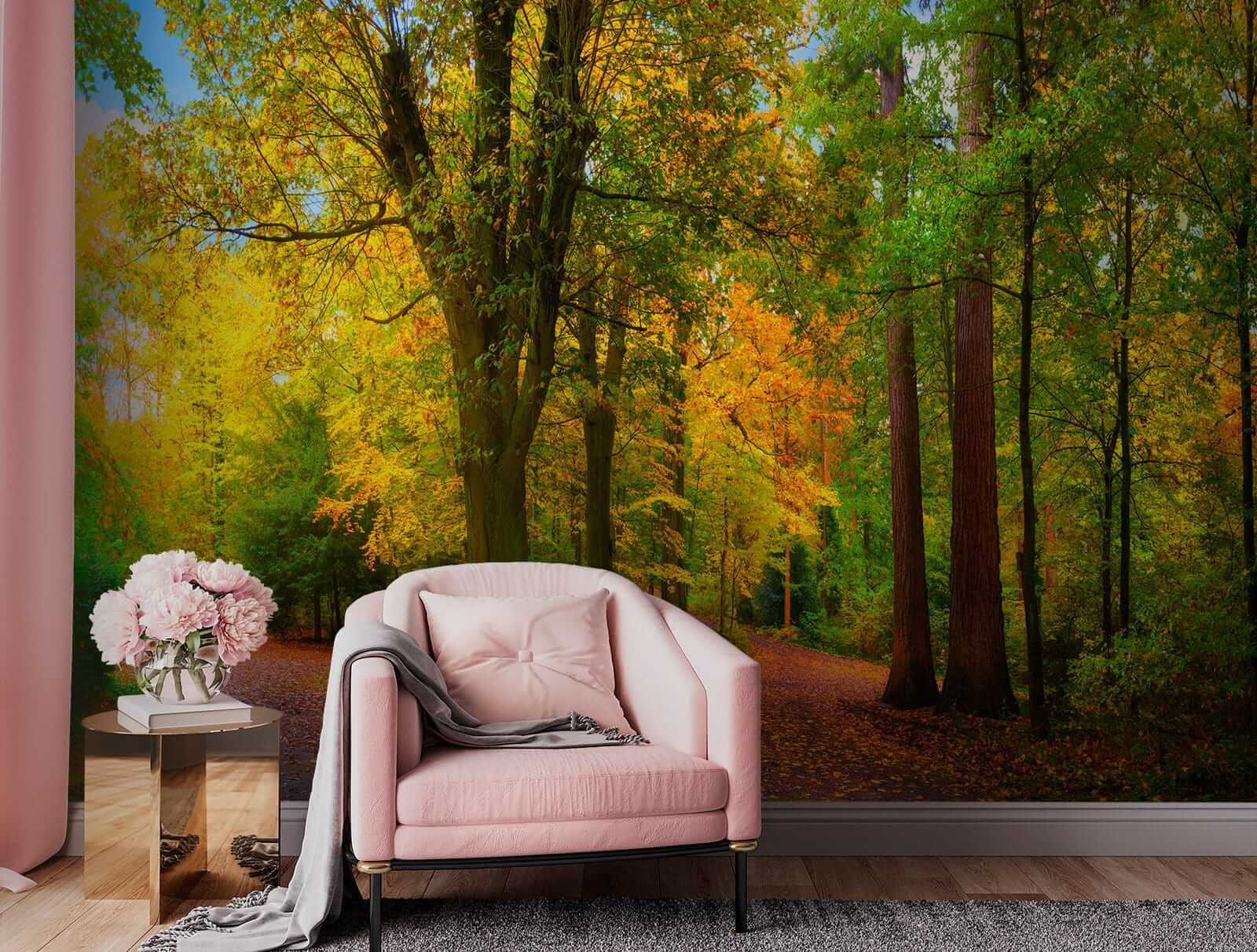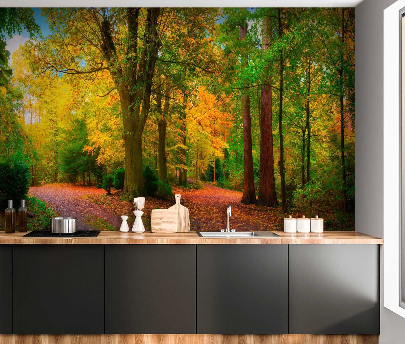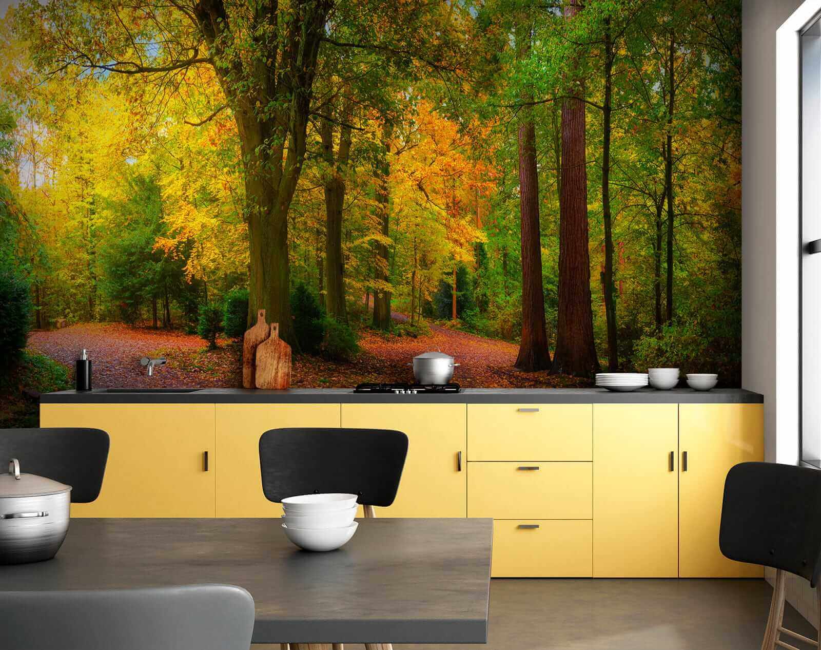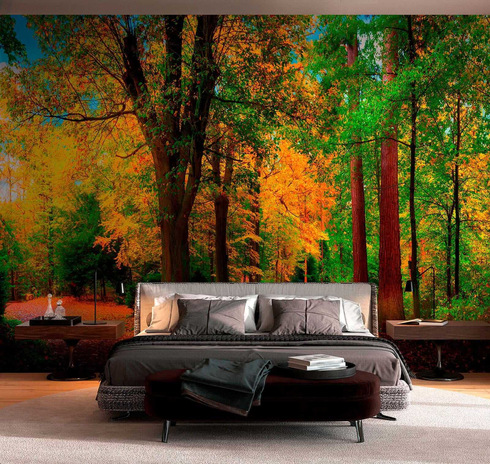 Premeňte akýkoľvek priestor pomocou tejto úžasnej nástennej maľby farebného jesenného lesa. Predstavte si kľukaté cestičky obklopené živými stromami, ktorých listy sú namaľované v bohatých odtieňoch, ktoré vystihujú podstatu jesene. Je to ako preniesť kúsok prírody do interiéru, kde môže na pozadí každodenného života doznievať jemné objatie lesnej prechádzky. Predstavte si, že popíjate kávu pri pohľade na túto scenériu alebo necháte svoju myseľ túlať sa po týchto pokojných cestičkách. Je ideálny na dodanie tepla a pokoja do vášho domova, rozprúdi rozhovory a prinesie dotyk divočiny priamo na vaše steny. Milovníci prírody, radujte sa!