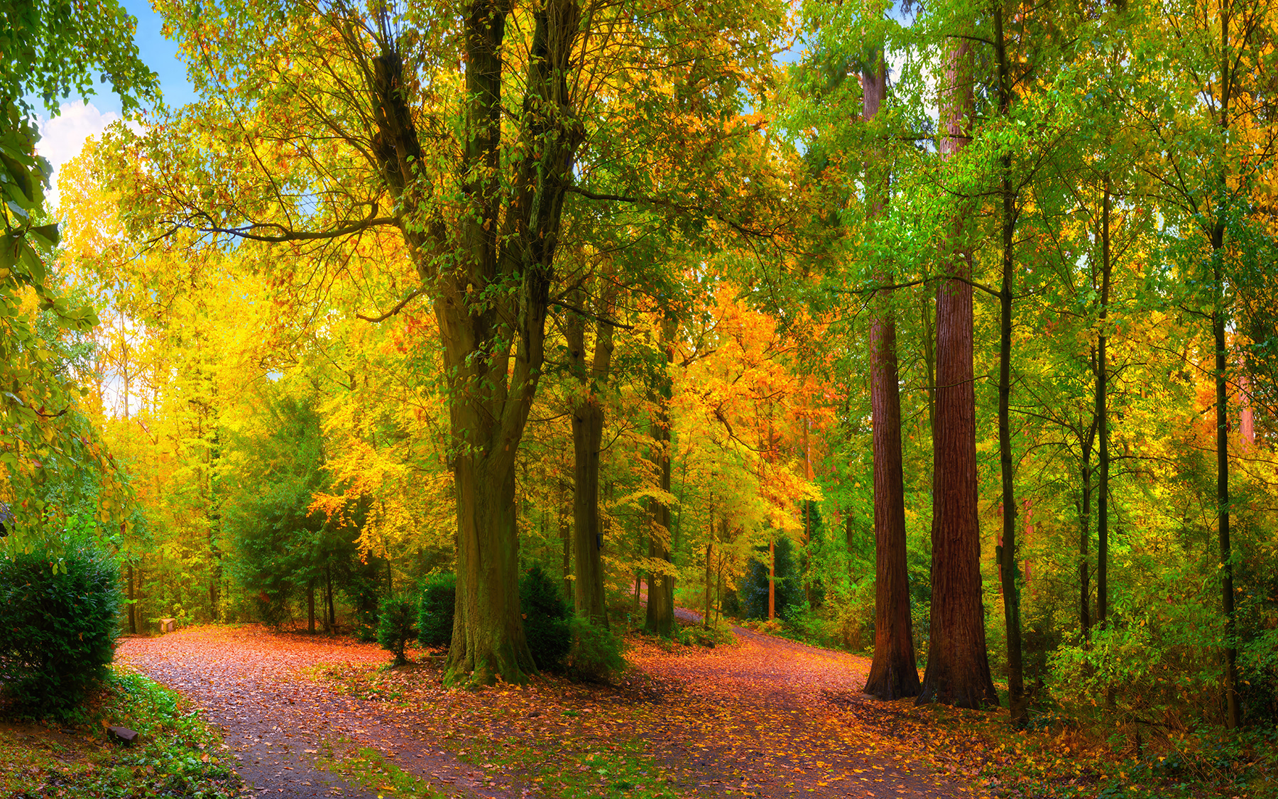 1 recenzia k Fototapety Farebný jesenný les s kľukatou cestou