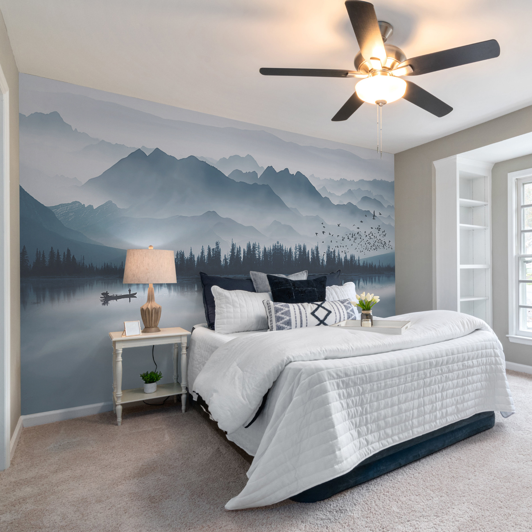 Predstavte si to: lenivé rána s kávou v ruke, deti stratené v nápaditých dobrodružstvách, ktoré premýšľajú, či sa za tými horami skrývajú draci, alebo pokojné chvíle, keď jednoducho potrebujete vizuálne uniknúť z ruchu. Tie šepkajúce stromy a pokojná voda sú ako objatie matky prírody. Ideálne pre milovníkov prírody, snílkov alebo všetkých, ktorí chcú svojmu priestoru dodať trochu zenu. Dokonca aj vaši hostia sa zastavia uprostred vety, aby obdivovali výhľad – je taký očarujúci! Tak smelo do toho, nechajte svoje steny, aby vás každý deň preniesli na dobrodružnú cestu.