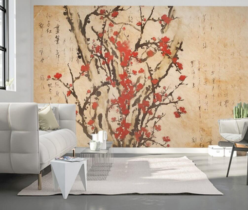 Transform any wall into a bright conversation starter with this stunning mural of a tree in full bloom, dressed in vibrant red flowers. It’s like bringing a piece of spring inside, no watering required! The delicate brushstrokes whisper stories, and the soft background beckons a warm, inviting atmosphere. Picture this: sipping tea, cozy on the couch, while this mural adds a touch of whimsy to your space. It’s not just decor; it sparks joy and imagination. Perfect for those who appreciate unique art that feels alive—like a gentle hug for your wall!