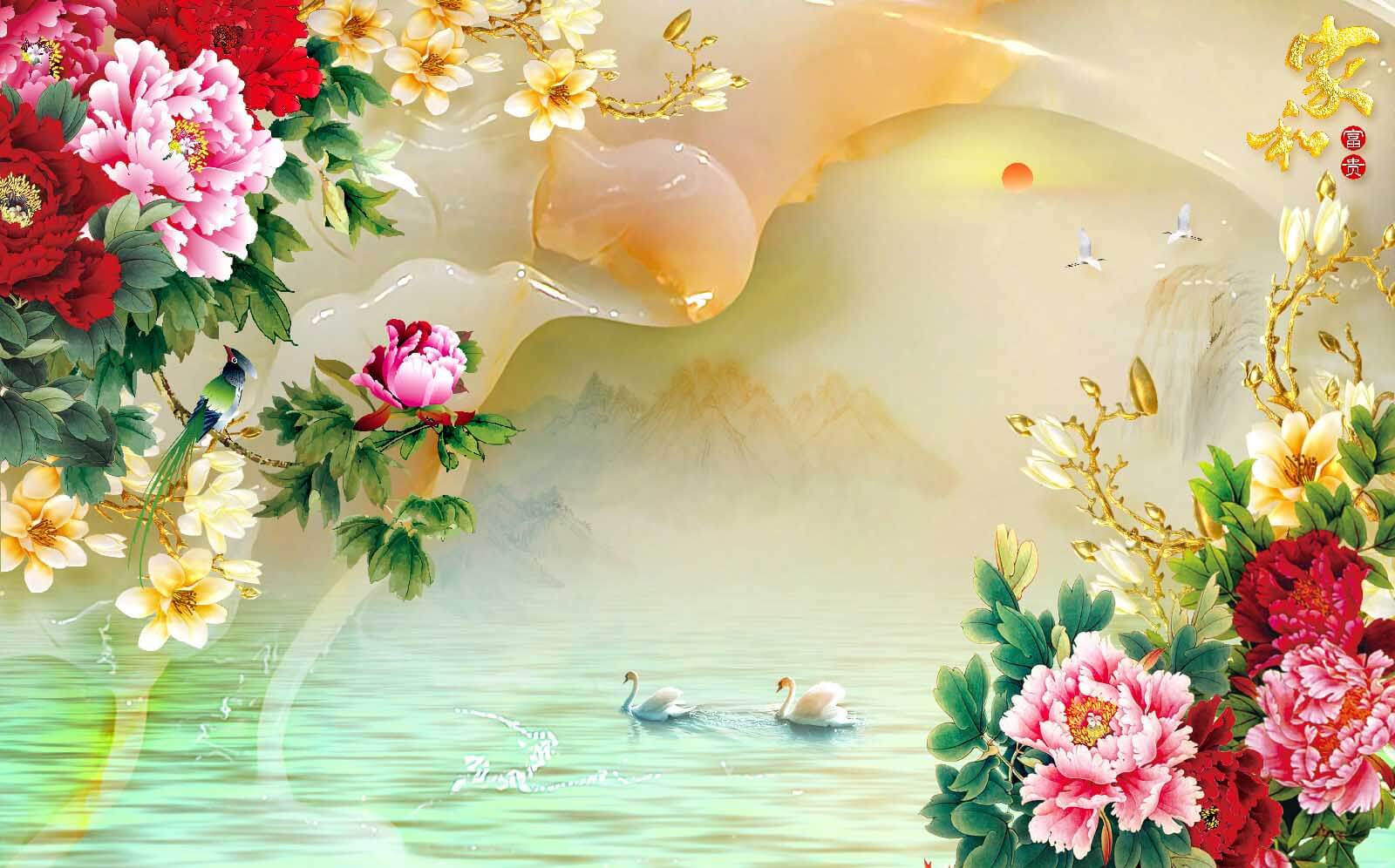 Premeňte akýkoľvek priestor na pokojnú oázu s touto očarujúcou nástennou maľbou s živými kvetmi a ladnými labutami. Kvitnúce pivonky žiaria farbami a vytvárajú živú atmosféru, zatiaľ čo pokojné labute sa vznášajú nad rozprávkovou vodnou hladinou a lákajú k relaxačnému popoludňajšiemu pohľadu. Predstavte si, ako tu popíjate čaj a máte pocit, že ste vstúpili do akvarelovej maľby. Tento kúsok je ideálny na akcentové steny alebo útulné kútiky, kde sa bez námahy spája krása prírody s vaším interiérom. Nie je to len umenie, je to pozvánka na zastavenie sa, nadýchnutie sa a trochu väčšie vychutnanie si života.
