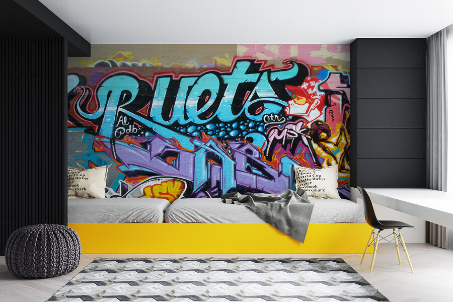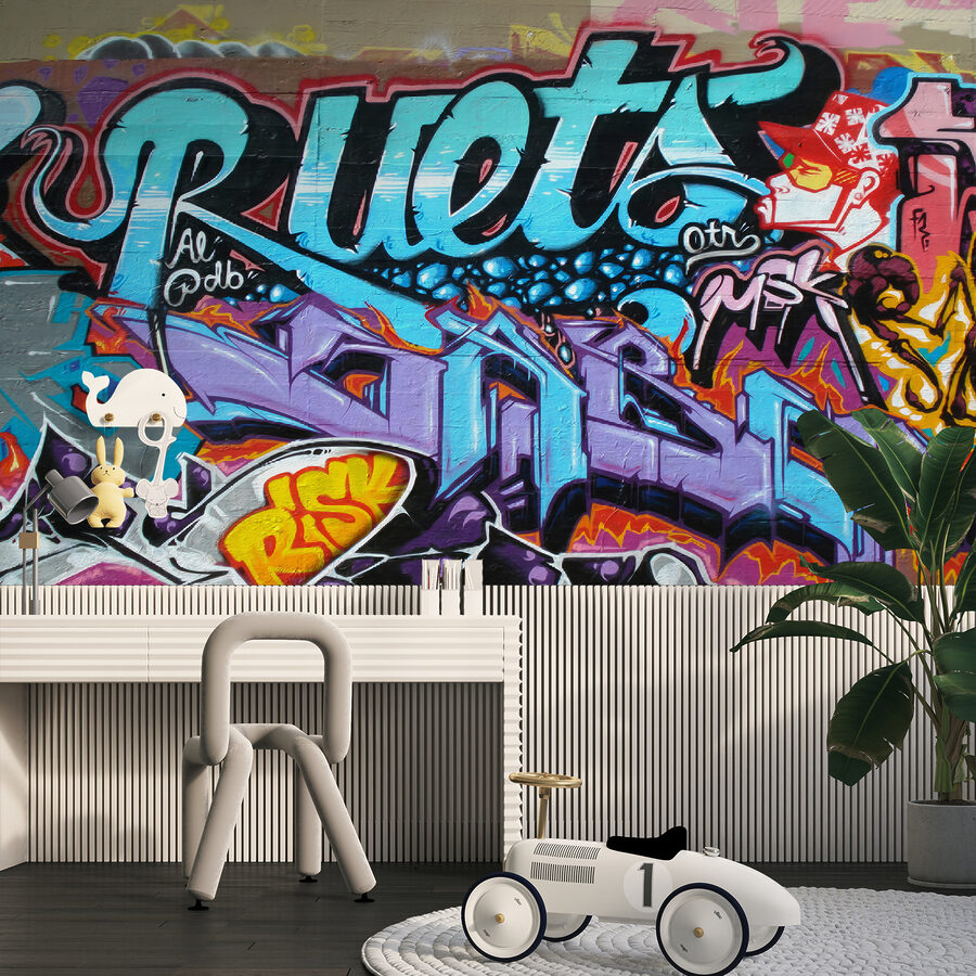 Táto nástenná maľba je ideálna pre tínedžerov alebo mladých dospelých, ktorí chcú vo svojom priestore trochu mestskej atmosféry, a kričí z nej osobnosť – bez toho, aby povedala čokoľvek. Má všetky tie žiarivé farby a zložité vzory, vďaka ktorým máte pocit, že sa prechádzate umeleckou bočnou uličkou v rušnom meste.