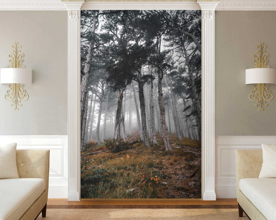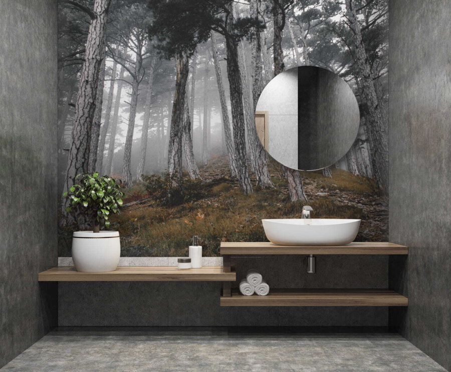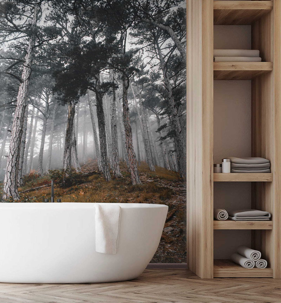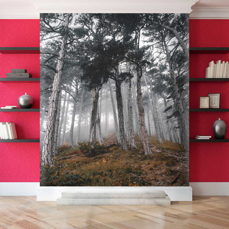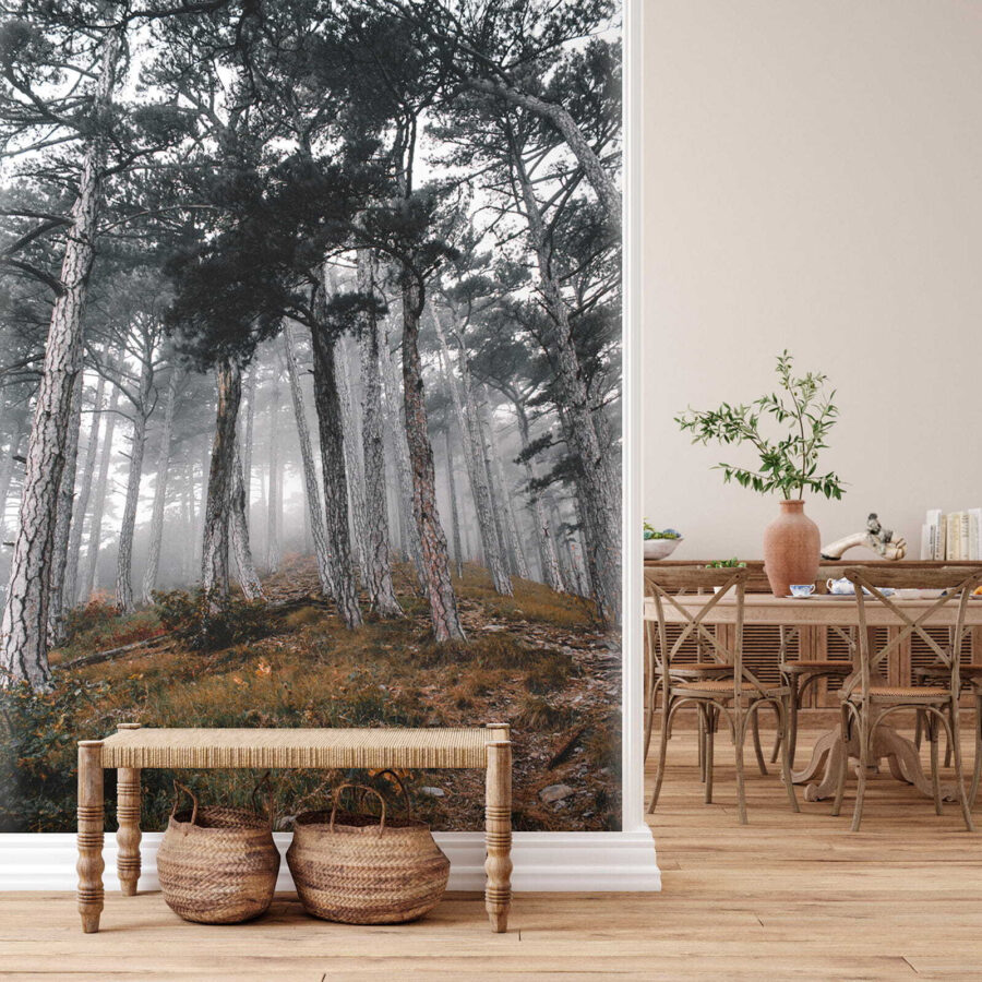 Predstavte si, že vstúpite do pokojného lesa, kde sa týčia vysoké stromy a hmla šepká tajomstvá prírody. Táto nástenná maľba „Les so stromami v hmle“ premení váš priestor na pokojné útočisko. Zachytáva ten snový okamih, keď slnko tancuje v hmle a vytvára jemné tiene a pocit úžasu. Predstavte si, ako sa zviniete s knihou alebo popíjate kávu, zatiaľ čo vás obklopuje táto pokojná scéna – je to ako priniesť si vonkajšok dovnútra bez hmyzu! Ideálne pre každého, kto chce svojim stenám dodať nádech pokoja a tajomna. Tak prečo nenechať svoju fantáziu blúdiť medzi týmito hmlistými stromami? Je to téma na rozhovor, pripomienka, aby ste dýchali, a kúsok lesnej mágie, všetko v jednom!