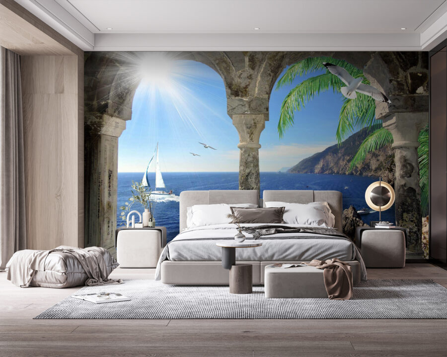 Vstúpte do raja s nástennou maľbou „Výhľad na oceán z kamenného oblúka“. Predstavte si, že sa prebudíte za jemného šumenia vĺn a vône slaného vzduchu, a to všetko z pohodlia svojej obývačky. Táto nástenná maľba vytvára malý únik, vďaka ktorému máte pocit, že za vašimi dverami je vždy slnečný deň. Vzlietajúce čajky a očarujúca plachetnica dokonale ladia s jemným kolísaním paliem, ktoré šepkajú relax. Je to ako dovolenka bez balenia! Ideálne pre každého, kto miluje kúzlo pobrežia a chce, aby sa jeho priestor cítil trochu viac magicky. Len si predstavte, aké rozhovory to vyvolá – kto nemá rád dobré príbehy z pláže? A hej, opaľovací krém nie je potrebný!