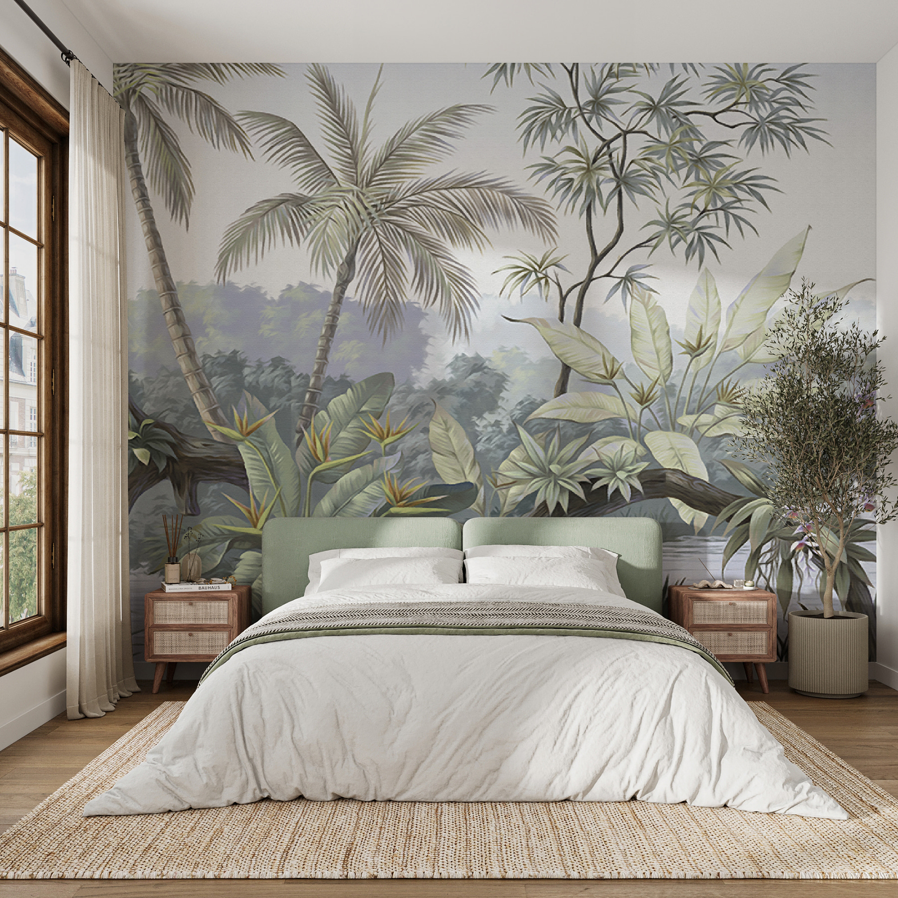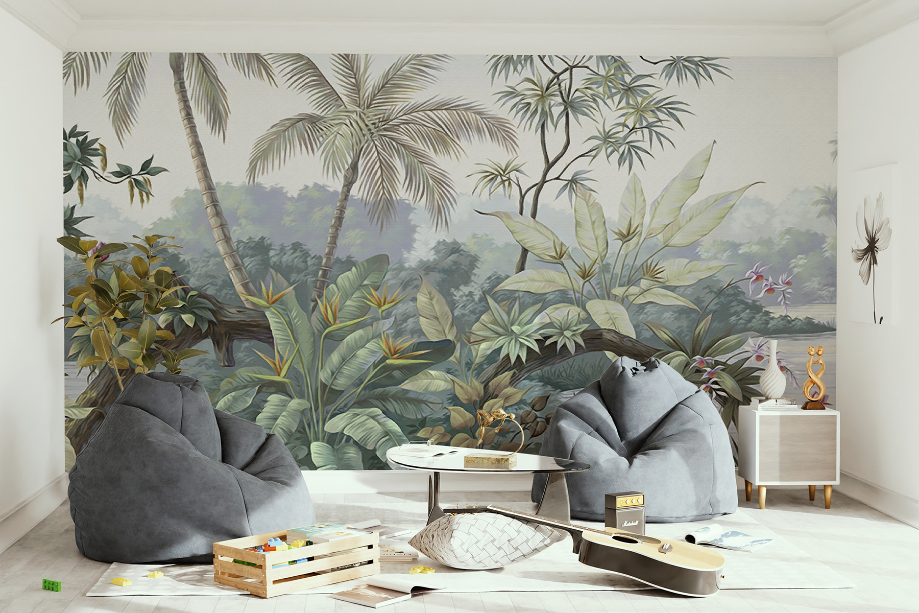 Predstavte si, že ste obklopení vysnívaným tropickým rajom – sviežimi palmami a bujnou zeleňou, bez letenky! Táto nástenná maľba “Rozmazaný obraz kvetu” vás vtiahne do pokojného raja. Predstavte si, ako popíjate rannú kávu pri pohľade na hmlou pobozkané rastliny. Je ideálna na to, aby ste do každej miestnosti vniesli nádych trópov. Pomôže vám uniknúť, aj keď len na chvíľu. Ideálny pre snívajúcich ľudí, milovníkov rastlín alebo pre každého, kto túži po pokojnej atmosfére. Je pokojná a osviežujúca, šepká do vášho domova jemnú uspávanku prírody. Každý deň sa cíti ako na minidovolenke!