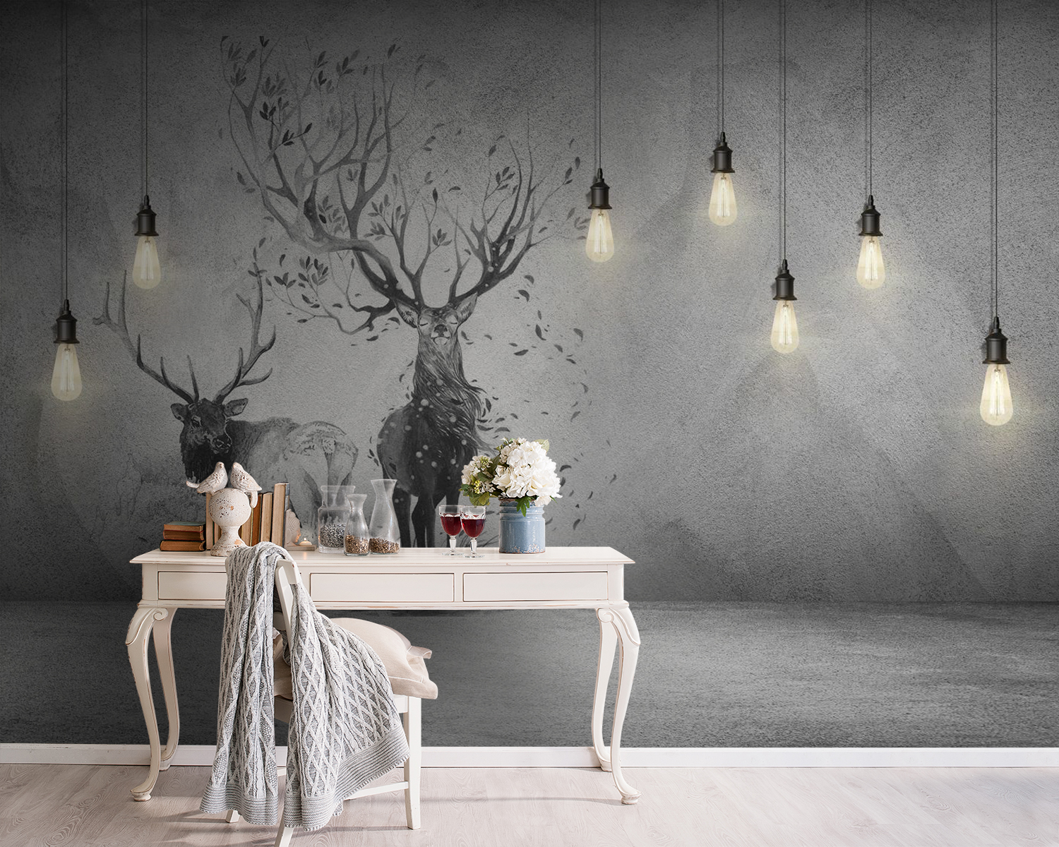Transforming a wall into a whimsical woodland scene just got a whole lot easier! This mural features two graceful deer standing amidst delicate trees, blending nature’s calm with a touch of artistic flair. Imagine waking up to this serene backdrop—it’s like bringing the outside in without any of the hassle (or mosquitoes!). The subtle details in the artwork invite you to get lost in daydreams, which is perfect for cozy reading nooks or inspiring home offices. Whether it’s a shared space or your personal sanctuary, this mural whispers relaxation. And hey, it’s also a fantastic conversation starter—because who doesn’t want to chat about majestic stags?