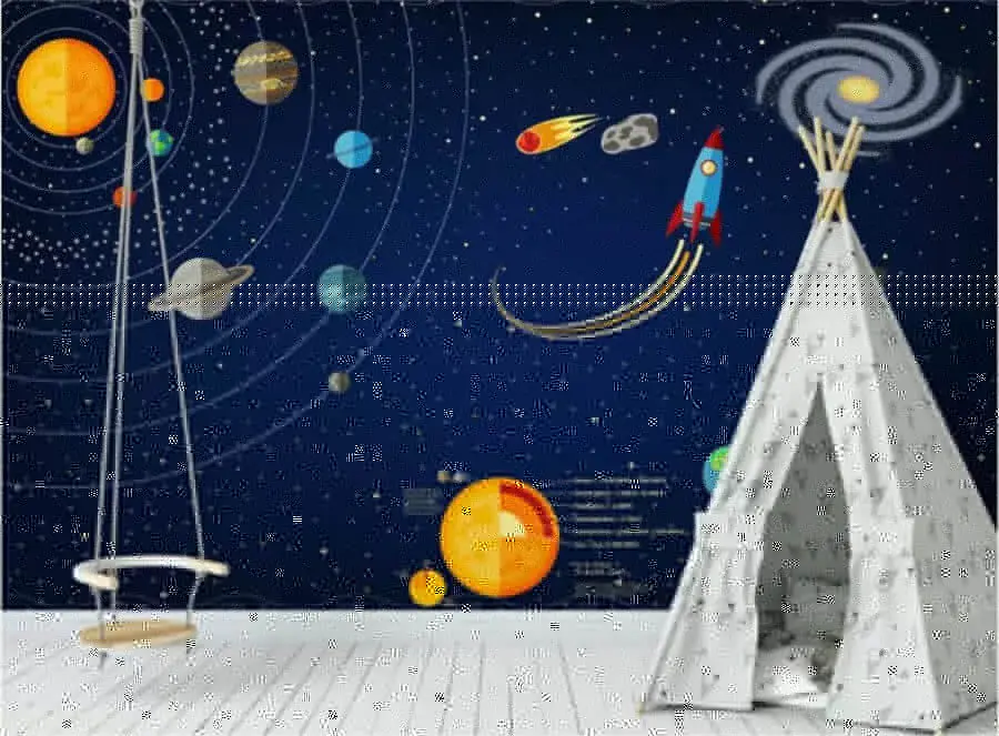 The vibrant colors and playful design can breathe life into any wall, making it feel like a direct portal to the galaxy. Plus, it’s a great conversation starter—friends might even try to guess which planet is which while you sip coffee. So, whether it’s a kid’s room or a creative corner, this mural’s got that magical touch to spark imaginations. Let your walls take a trip through space!
