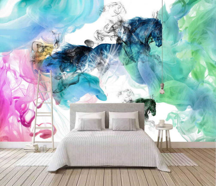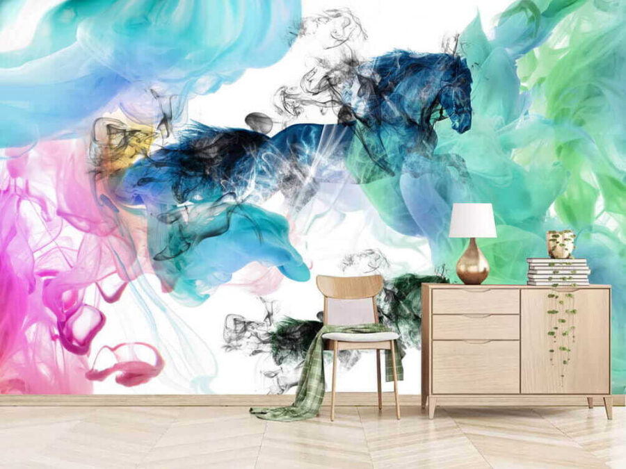 Premeňte akýkoľvek priestor pomocou tejto podmanivej nástennej maľby koní tancujúcich cez farebné oblaky dymu. Je to ako divoké snenie, v ktorom sa stretáva umenie a predstavivosť. Žiarivé odtiene – myslite na modrú prelínajúcu sa s hravou ružovou – prinášajú energiu a šarm, vďaka čomu sa s ňou určite začnete rozprávať. Predstavte si ho v útulnom čitateľskom kútiku alebo na odvážnej výraznej stene. Možno práve inšpiruje k improvizovanej tanečnej párty alebo pokojným večerom s knihou a šálkou čaju. S každým pohľadom sa budete cítiť o niečo živšie, ako závan čerstvého vzduchu priamo u vás doma. Navyše, kto by nemal rád koňa cválajúceho cez farebný oblak? Tak to je atmosféra!