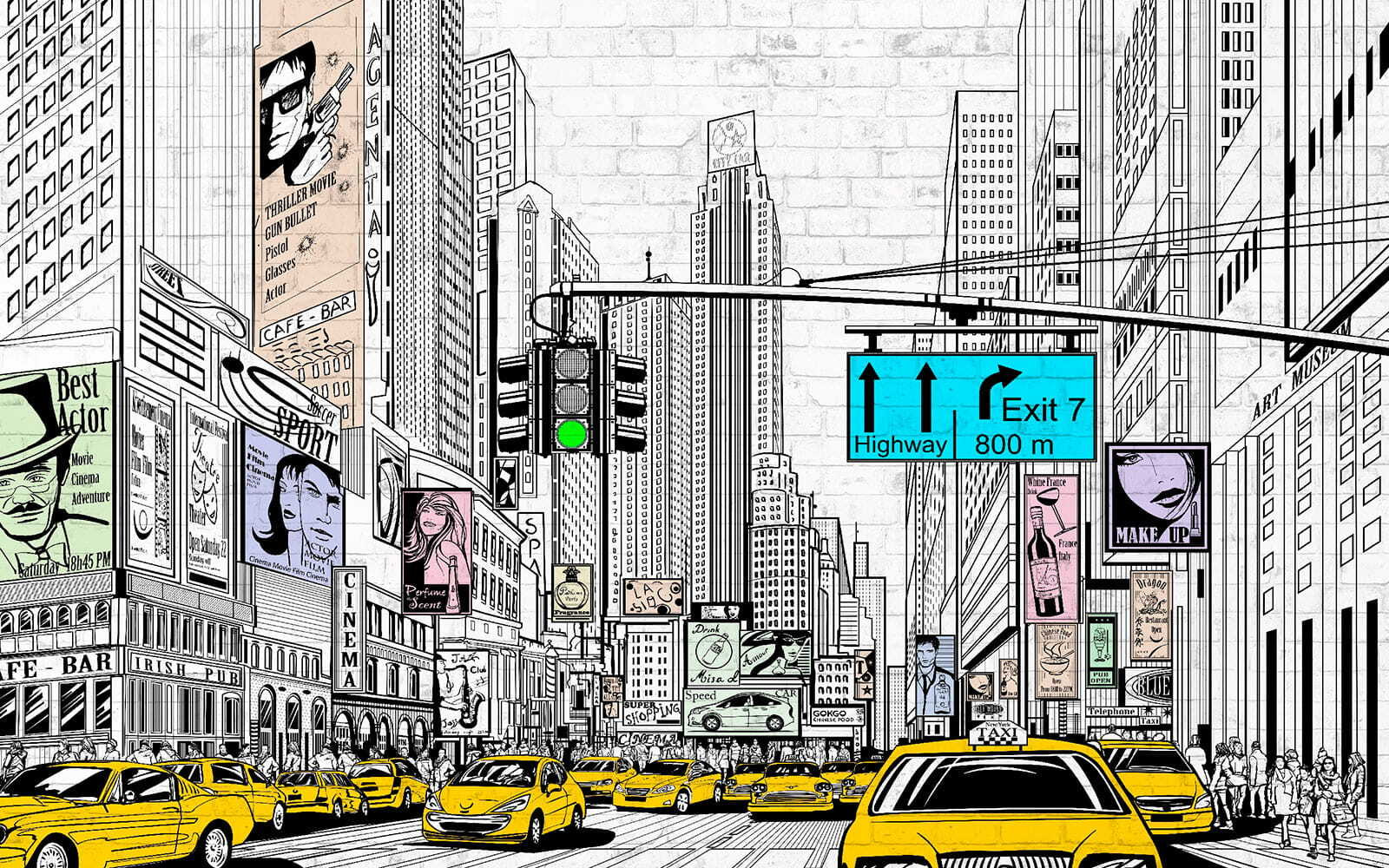 Máte stenu, ktorá potrebuje oživenie? Pozrite si túto nástennú maľbu “Žlto-čierne auto”! Predstavte si, že vstúpite do svojej izby – akoby ste sa ocitli na rušnej mestskej ulici plnej energie! Tieto žlté autá vystupujú na pozadí chladnej čiernobielej mestskej krajiny – akoby ožili v komikse. Ideálne do detskej izby – budú milovať dobrodružnú atmosféru! Alebo možno do kancelárie? Mohla by vám dodať šmrnc centra bez toho, aby ste museli opustiť domov. Či už snívate o svetlách mesta, alebo len chcete niečo iné – táto nástenná maľba zmení hru! Zaveste ju a zrazu má váš priestor čo rozprávať. Super, však?