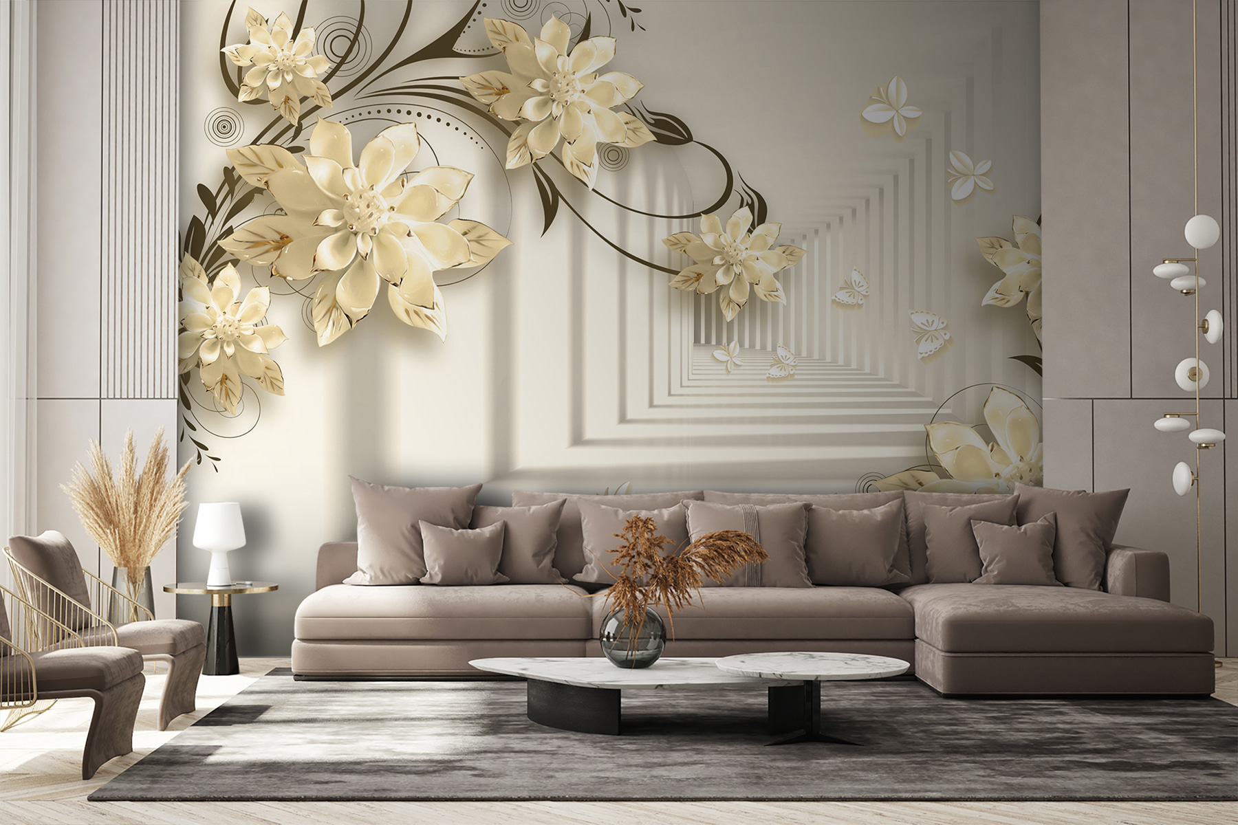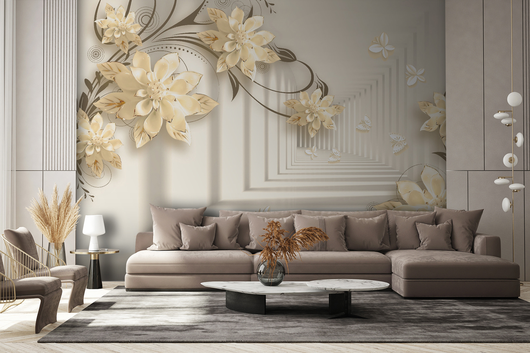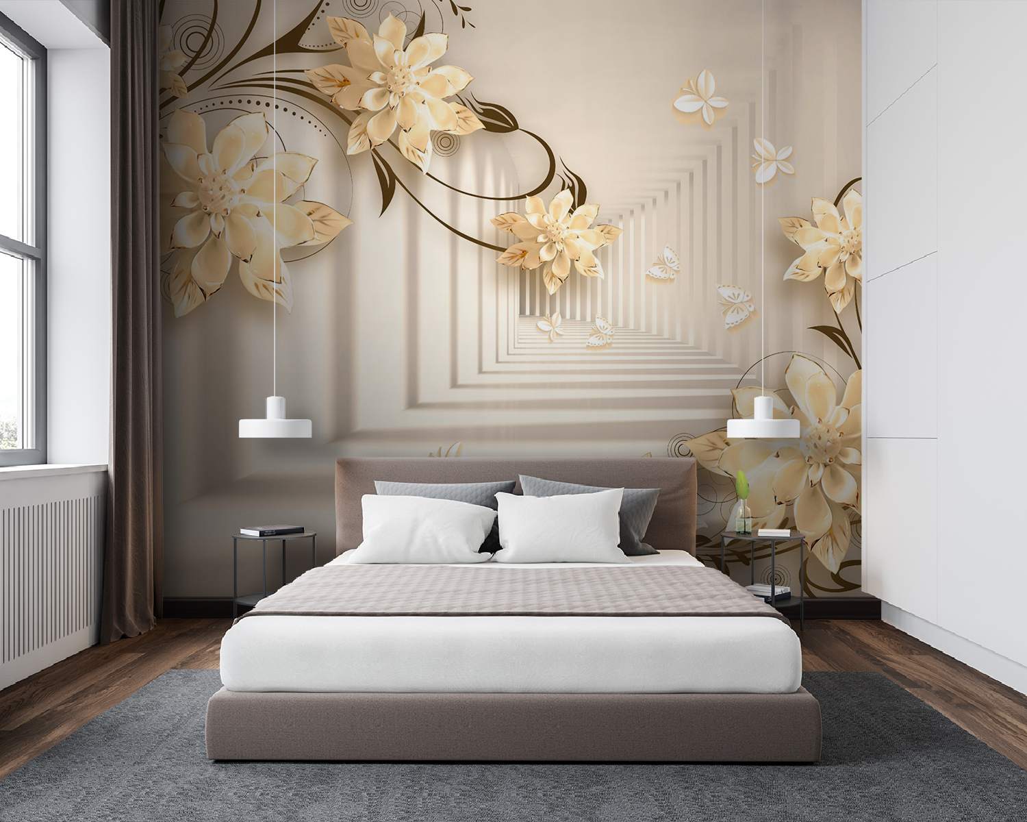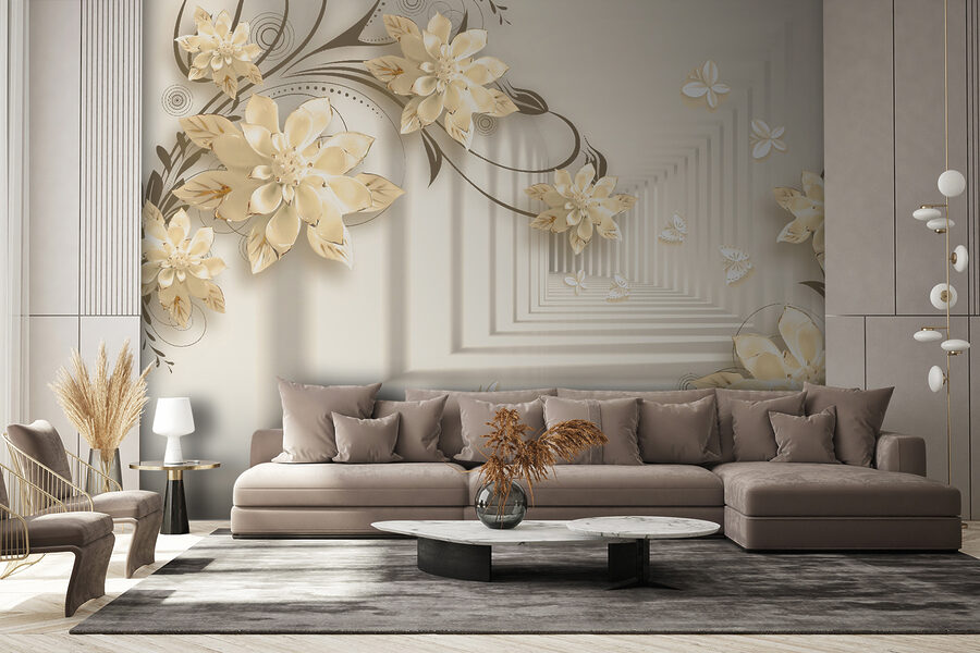Predstavte si, že máte stenu ako rozmarnú záhradu priamo vo svojej obývačke! Táto fototapeta “Elegantný kvetinový dizajn s motýľmi” to dokáže. Je to ako vstúpiť do pokojnej fantázie, kde kvitnú nekonečné kvety a poletujú motýle. Predstavte si tie elegantné 3D kvety, ktoré vyskakujú a vytvárajú jemnú, zasnenú atmosféru… Je to ako mať prírodné umenie priamo v interiéri!