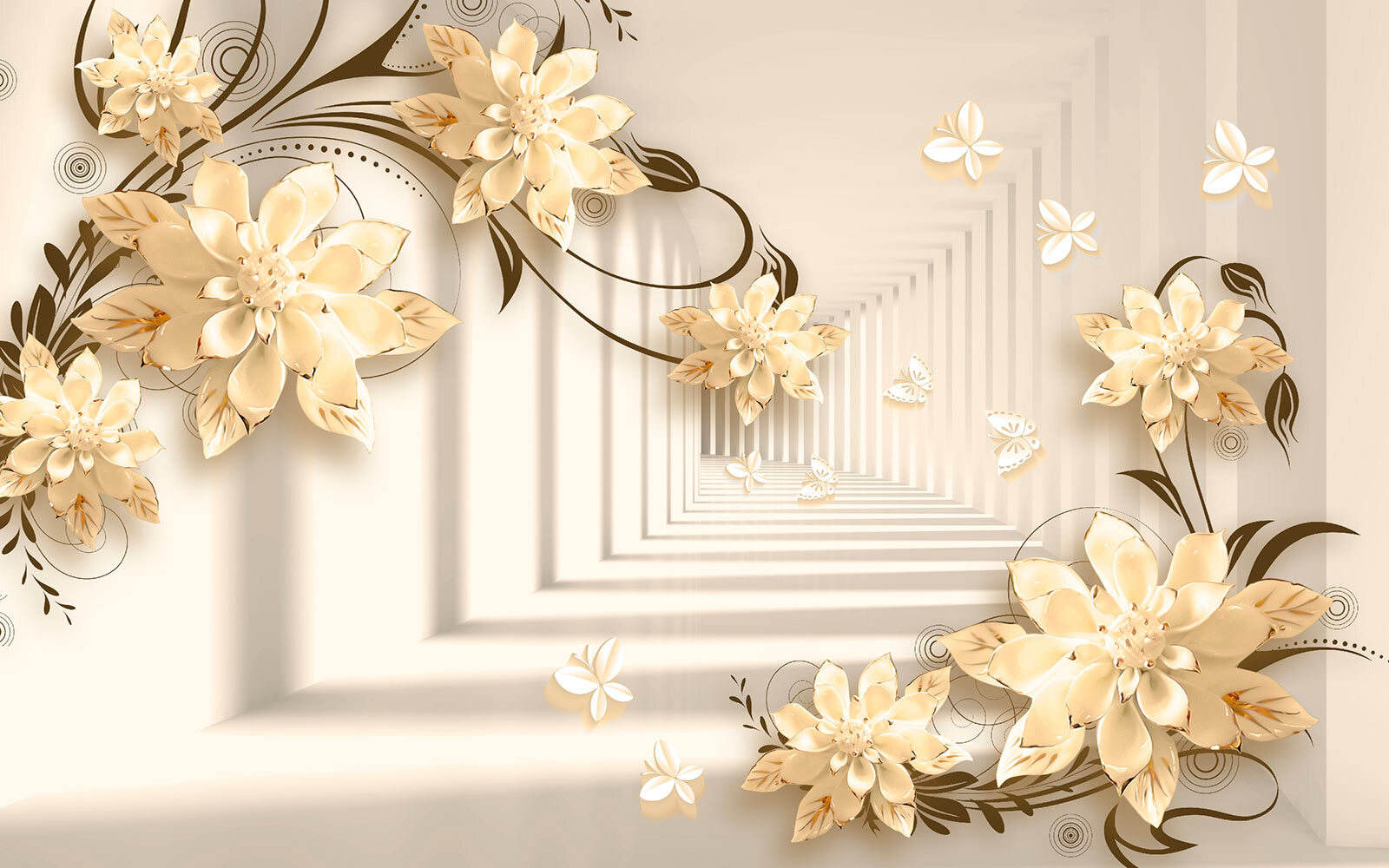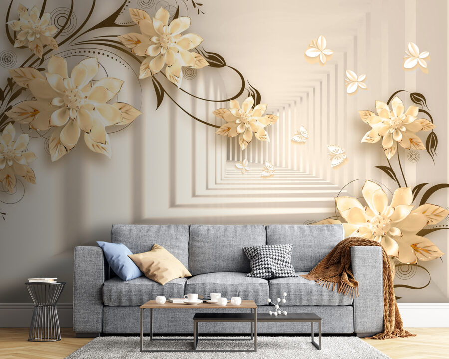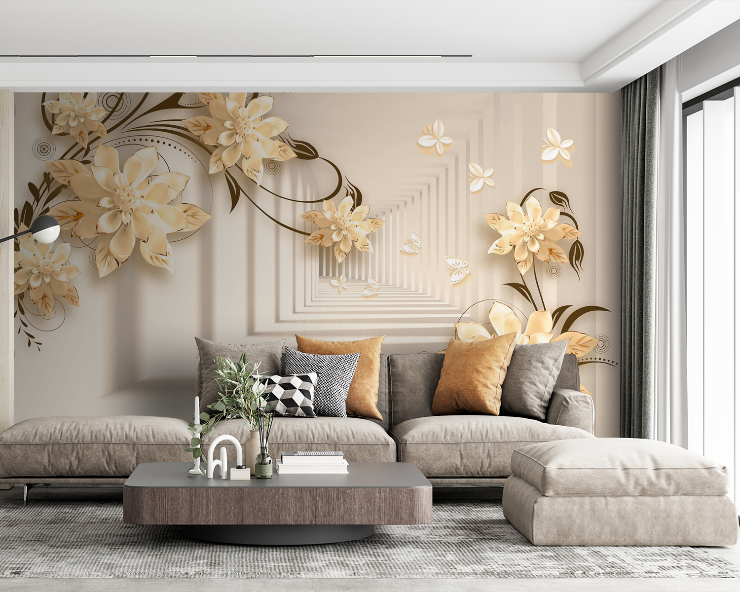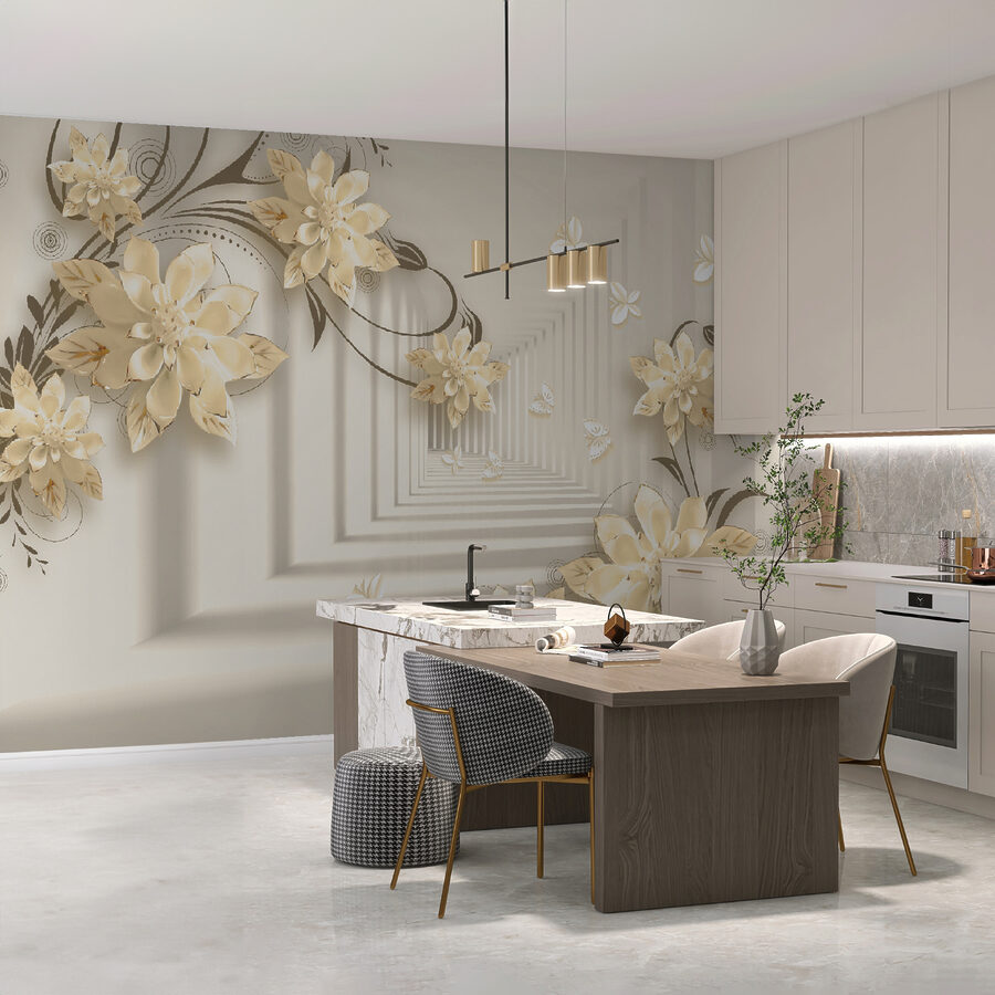 Predstavte si, že máte stenu ako rozmarnú záhradu priamo vo svojej obývačke! Táto fototapeta “Elegantný kvetinový dizajn s motýľmi” to dokáže. Je to ako vstúpiť do pokojnej fantázie, kde kvitnú nekonečné kvety a poletujú motýle. Predstavte si tie elegantné 3D kvety, ktoré vyskakujú a vytvárajú jemnú, zasnenú atmosféru… Je to ako mať prírodné umenie priamo v interiéri!