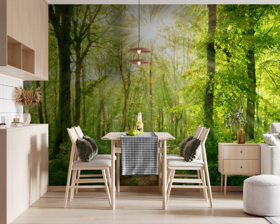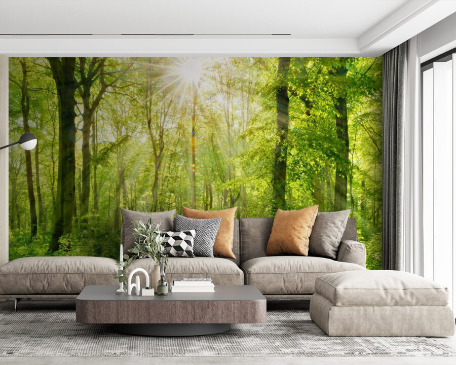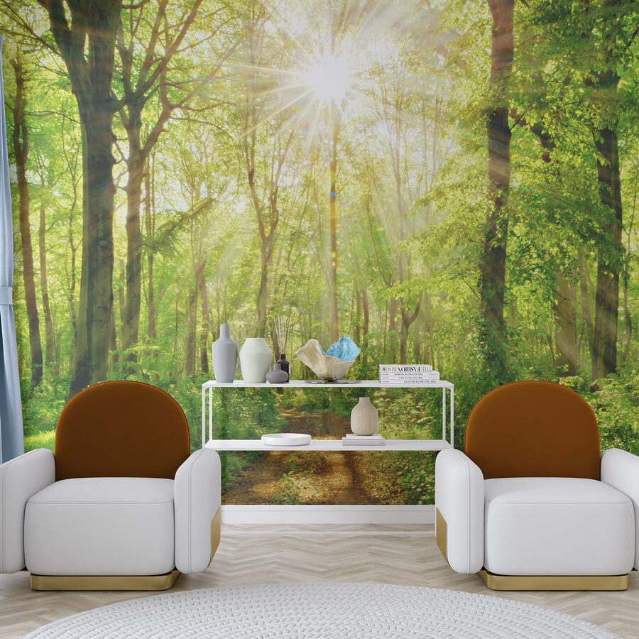 Premeňte svoj priestor pomocou tejto podmanivej nástennej maľby so slnečnými lúčmi, ktoré sa predierajú cez svieže stromy. Predstavte si, že vojdete do svojej izby a budete mať pocit, že ste vstúpili do pokojného lesa – dokonalej relaxačnej zóny prírody. Žiarivá zeleň vyniká a pozýva do pokojných vibrácií, takmer akoby ste počuli jemné šumenie listov. Či už je to váš čitateľský kútik alebo miesto živého stretnutia, táto nástenná maľba rozkošne pôsobí na zmysly. Je ako závan čerstvého vzduchu pre vaše steny a vytvára dokonalé pozadie pre príjemné rozhovory alebo pokojné chvíle osamote. Navyše je jednoducho príjemné pomyslieť na to, že kúsok prírody môže vniesť do interiéru takú radosť.