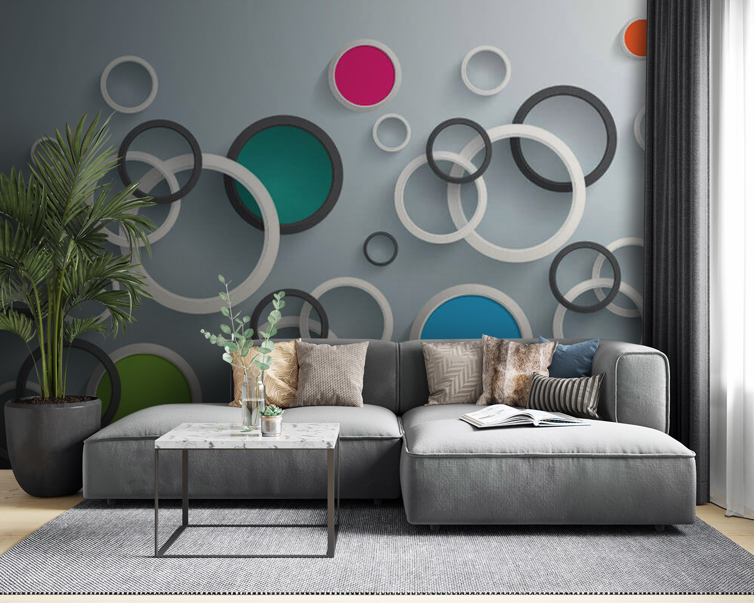Brighten up any room with this delightful wall mural of colorful circles. It’s like a playful splash of confetti that just won’t come down. Imagine walking into your living room, and—whoosh—those vibrant colors draw you in, almost inviting you to join the fun. The soft, muted background keeps things calm, while the circles burst forth in shades of pink, teal, and green, making it a conversation starter for sure.