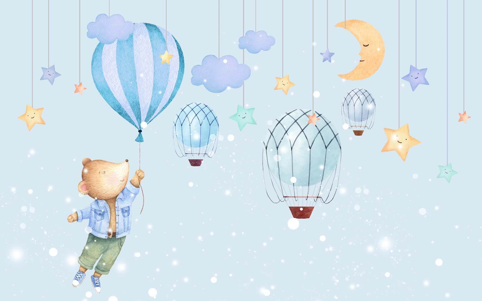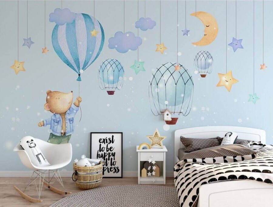 Premeňte akýkoľvek priestor na rozprávkovú krajinu s touto nádhernou nástennou maľbou, na ktorej je zobrazený roztomilý medvedík z kresleného filmu, ktorý sa radostne drží balónika. Predstavte si to: malé dieťa s úžasom hľadí na medvedíka, ktorý pláva nad snovou oblohou plnou usmievavých hviezd a roztomilých teplovzdušných balónov. Je to druh nástenného umenia, ktoré rozpaľuje fantáziu a láka k dobrodružstvu – a zároveň dodáva farbu a radosť. Ideálne do detských izieb, herní alebo akéhokoľvek útulného kútika, ktorý potrebuje trochu radosti. Viete si predstaviť čítanie rozprávok pod touto tapetou? Je to ako teplé objatie pre steny! Tak prečo nenechať tohto medvedíka, aby vás vzal na malú cestu?
