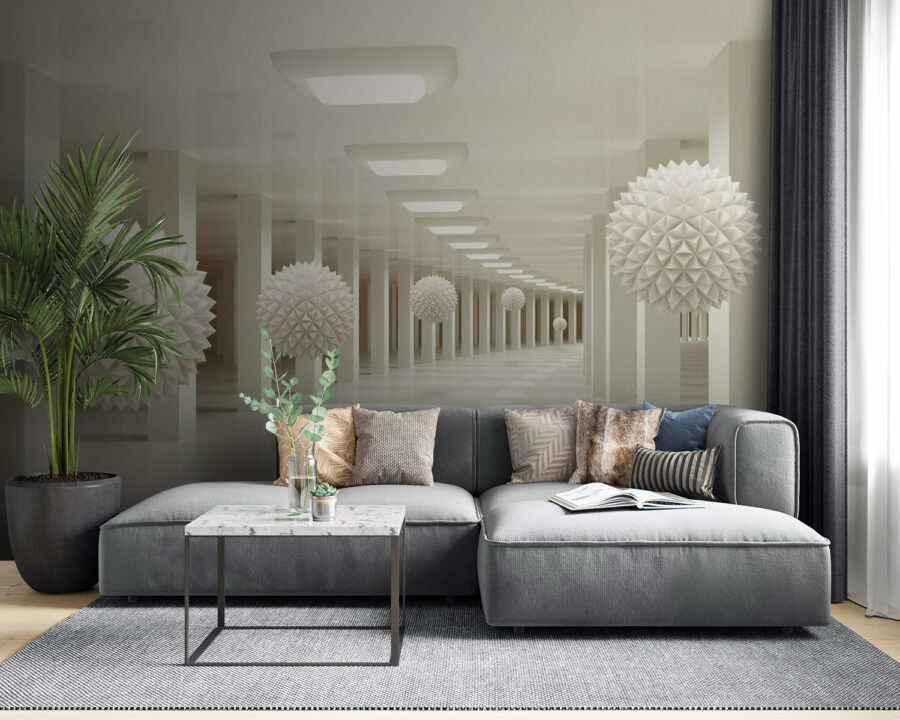 Chceli ste sa niekedy cítiť ako vo futuristickej umeleckej galérii? Nástenná maľba “Biela guľa s trojuholníkmi” vám prinesie presne takúto atmosféru! Predstavte si to vo svojej útulnej obývačke alebo elegantnom kancelárskom priestore – prehliadka 3D bielych sfér, ktoré sa pokojne vznášajú uprostred geometrickej krajiny zázrakov. Je to ako vstúpiť do inej dimenzie!