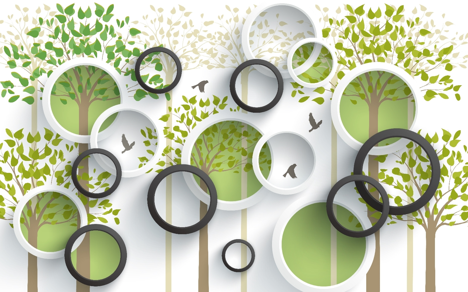 Nie je táto nástenná maľba ako závan čerstvého vzduchu? Predstavte si, že sa zobudíte s pohľadom na vtáky a stromy zasadené do nepredvídateľných kruhových rámov – je to ako keby ste mali priamo u vás doma les vo veľkosti vrecka. Tento dizajn “Vtáky a stromy na stene” by bol ideálny pre každého, kto má rád nádych prírody, ale s ozvláštnením. Žiarivá zeleň a vtáky okamžite oživia miestnosť; je to ako malý únik do prírody bez toho, aby ste museli opustiť gauč.