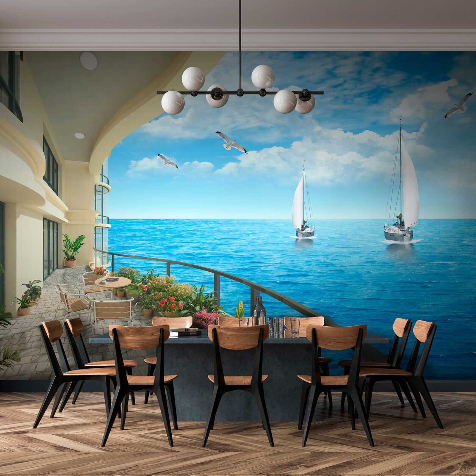 Predstavte si, že vstúpite do miestnosti, ktorej steny prinášajú oceánsky vánok priamo k vašim zmyslom. Táto fototapeta s balkónom s nádherným výhľadom na oceán a lode lenivo plávajúce po vode premení každý priestor na pobrežné útočisko. Predstavte si, ako popíjate rannú kávu a vzduchom sa šíri symfónia jemných vĺn a morských vtákov – kto by to nechcel? Žiarivá modrá a svieža zeleň priam nabádajú k odpočinku. Je to ako nekonečná dovolenka u vás doma, ktorá poskytuje stenám závan čerstvého morského vzduchu. Ideálne pre snívajúcich ľudí alebo pre každého, kto potrebuje vo svojom živote trochu pokoja. Stačí ho zavesiť a nechať sa unášať vlnami!