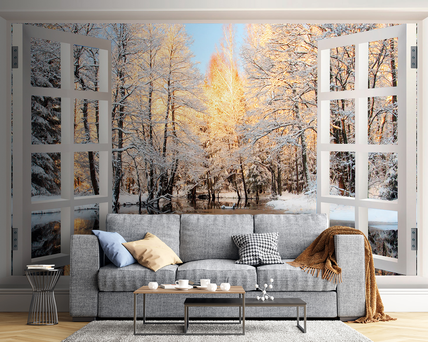 Premeňte každú miestnosť na závan čerstvého vzduchu s touto úžasnou nástennou maľbou s hravou scénou vtákov, ktorí sa pozerajú na pokojné jazero, orámované útulným oknom. Predstavte si, že sa každý deň budíte s týmto výhľadom – jemný lesk vody, zasnežené stromy jemne sa lesknúce vo svetle a tie zvedavé vtáky, ktoré sa na vás pozerajú. Je to ako mať prírodu na dosah ruky. Ideálny pre akúkoľvek atmosféru, či už ide o pohodovú obývačku alebo pokojnú spálňu. Rozlúčte sa s nevýraznými stenami a nechajte svoj priestor vyrozprávať príbeh, ktorý každého hosťa prinúti urobiť dvojitý pohľad. Jemná pripomienka krásy, ktorá je hneď za dverami a čaká na to, aby ste si ju vážili.