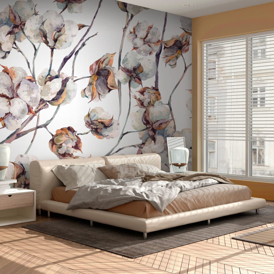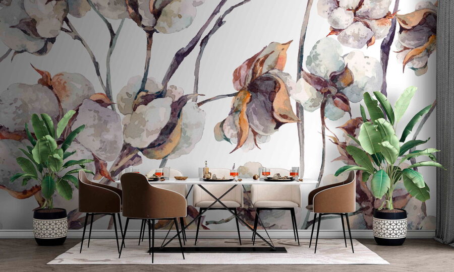 Premeňte svoj priestor pomocou tejto nádhernej nástennej maľby s bavlnenými kvetmi. Len si predstavte, že vstúpite do útulnej miestnosti, ktorá je ako závan čerstvého vzduchu! Tieto jemné kvety dokážu zjemniť atmosféru, vďaka čomu sa aj tie najťažšie dni stanú o niečo ľahšími. Navyše je na bavlne niečo úžasne nostalgické, ako spomienky na slnečné dni a jemný vánok.