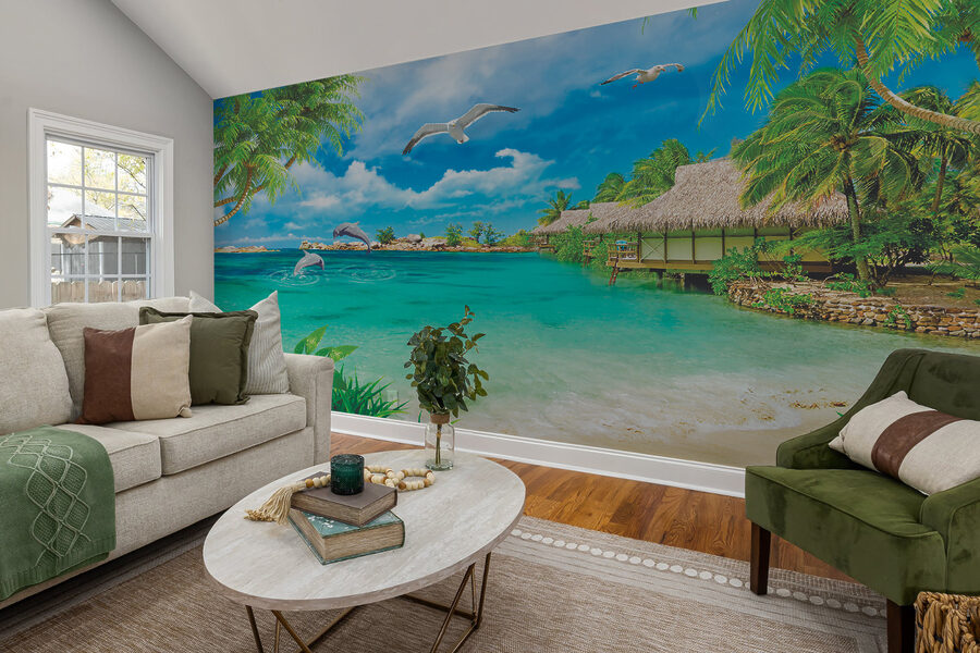 Premeňte svoj priestor na tropický únik s touto úžasnou nástennou maľbou bieleho vtáka vznášajúceho sa na žiarivo modrej oblohe. Predstavte si, že sa každé ráno budíte s pocitom, že ste na dovolenke na pláži – palmy sa kolíšu, vlny jemne narážajú na pobrežie a delfíny predvádzajú hravé skoky len pre vás. Farby sú také živé, že možno zabudnete na deň prania. Toto živé umelecké dielo vnesie pokojnú, vyrovnanú atmosféru do každej miestnosti, či už je to útulná obývacia izba alebo živá kancelária. Je ideálny pre snívajúcich ľudí aj milovníkov pláží, je to ako pozvať leto do vášho domova po celý rok. Kto by si nechcel pripomínať lenivé dni zaliate slnkom? Malý kúsok raja priamo na vašej stene!