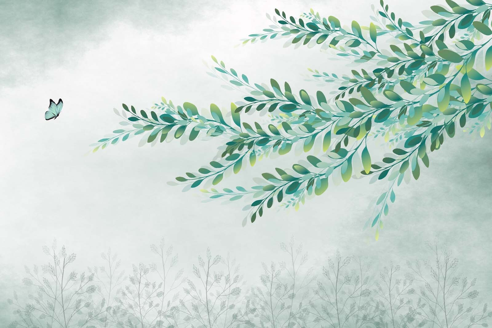 Transform any room into a little slice of nature with the “Green Leaves on a Branch” wall mural. Imagine stepping into your living space, only to be greeted by soft watercolor leaves dancing on the walls—seriously, it’s like having a mini garden indoors. Those gentle greens and blues? They bring that refreshing, calming vibe that makes you think of lazy afternoons spent in the shade of your favorite tree.