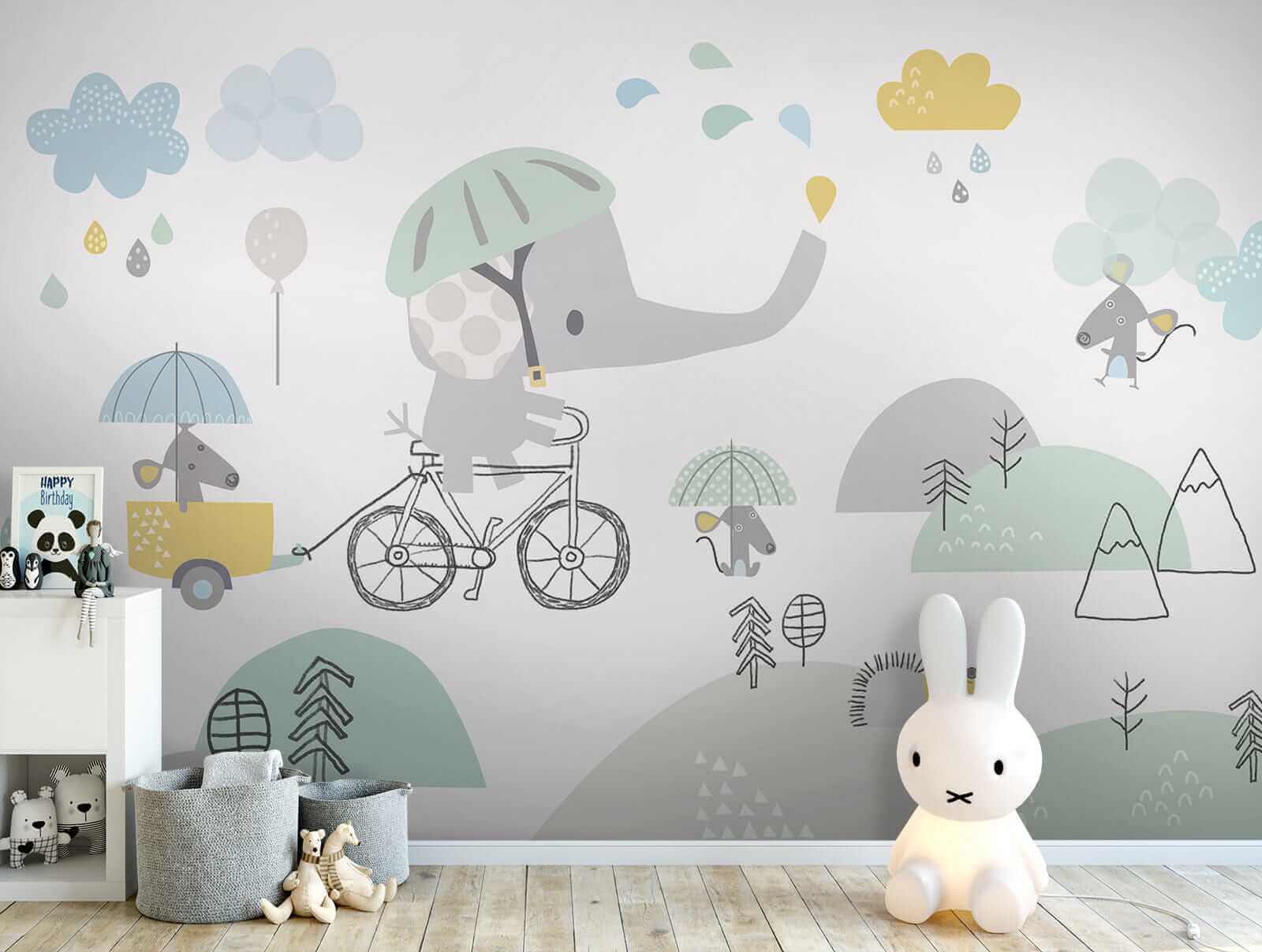 Rozjasnite detskú izbu touto rozkošnou, fantazijnou nástennou maľbou s kresleným slonom na bicykli – kto by to nechcel vidieť? Predstavte si, ako deti hľadia na tohto veľkého chlapíka, ktorý šliape do pedálov v jemnej krajine so svojimi zvieracími kamarátmi. Je to ako rozprávková kniha, ktorá ožila! Hravé farby a roztomilé postavičky vyvolávajú úsmevy, čím vytvárajú perfektné pozadie pre dobrodružstvá. Predstavte si smiech detí, ktoré sa delia o svoje vlastné príbehy o dobrodružstvách s týmto veselým slonom. Je to viac ako dekorácia, je to denná dávka radosti! Ideálne na rozvíjanie fantázie.