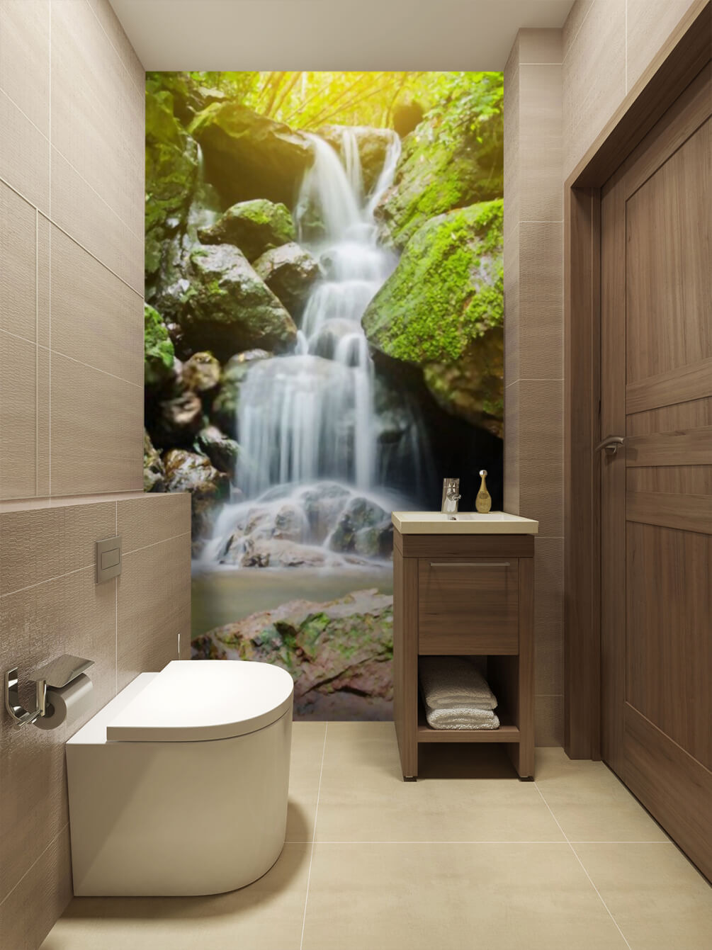 Predstavte si, že premeníte obyčajnú miestnosť na pokojný únik – s touto fototapetou “Pokojný vodopád uprostred sviežej zelene” je to jednoduché. Predstavte si to: jemná kaskáda vody cez machové skaly, orámovaná živou listnatou zeleňou… pokojné útočisko priamo u vás doma. Táto fototapeta nie je len dekoráciou, ale zachytáva momenty, ktoré navodzujú pokoj, ako keď vstúpite do skrytého lesného zákutia. Je ideálna pre chvíle, keď potrebujete upokojujúci dotyk prírody, ale nemôžete opustiť dom. Nainštalujte si ju do obývačky, spálne alebo dokonca do kancelárie – všade tam, kde potrebujete dotyk raja. Len si predstavte, ako vás vítajú upokojujúce vibrácie a jemný šepot padajúcej vody! Či už meditujete, čítate knihu alebo organizujete príjemné posedenie, táto nástenná maľba prináša do interiéru osviežujúci závan veľkej prírody. Každý pohľad na ňu vám možno ukradne úsmev a povzdych spokojnosti.