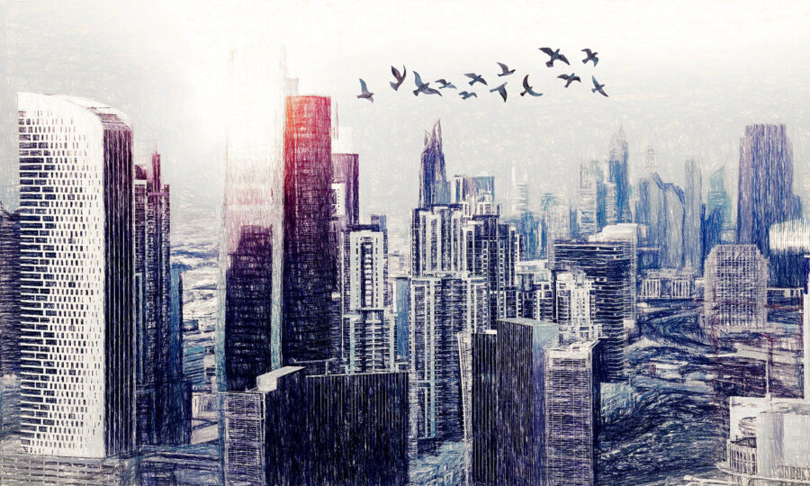 Fototapety Vtáky letiace nad mestom (Katalógové číslo: u29199)