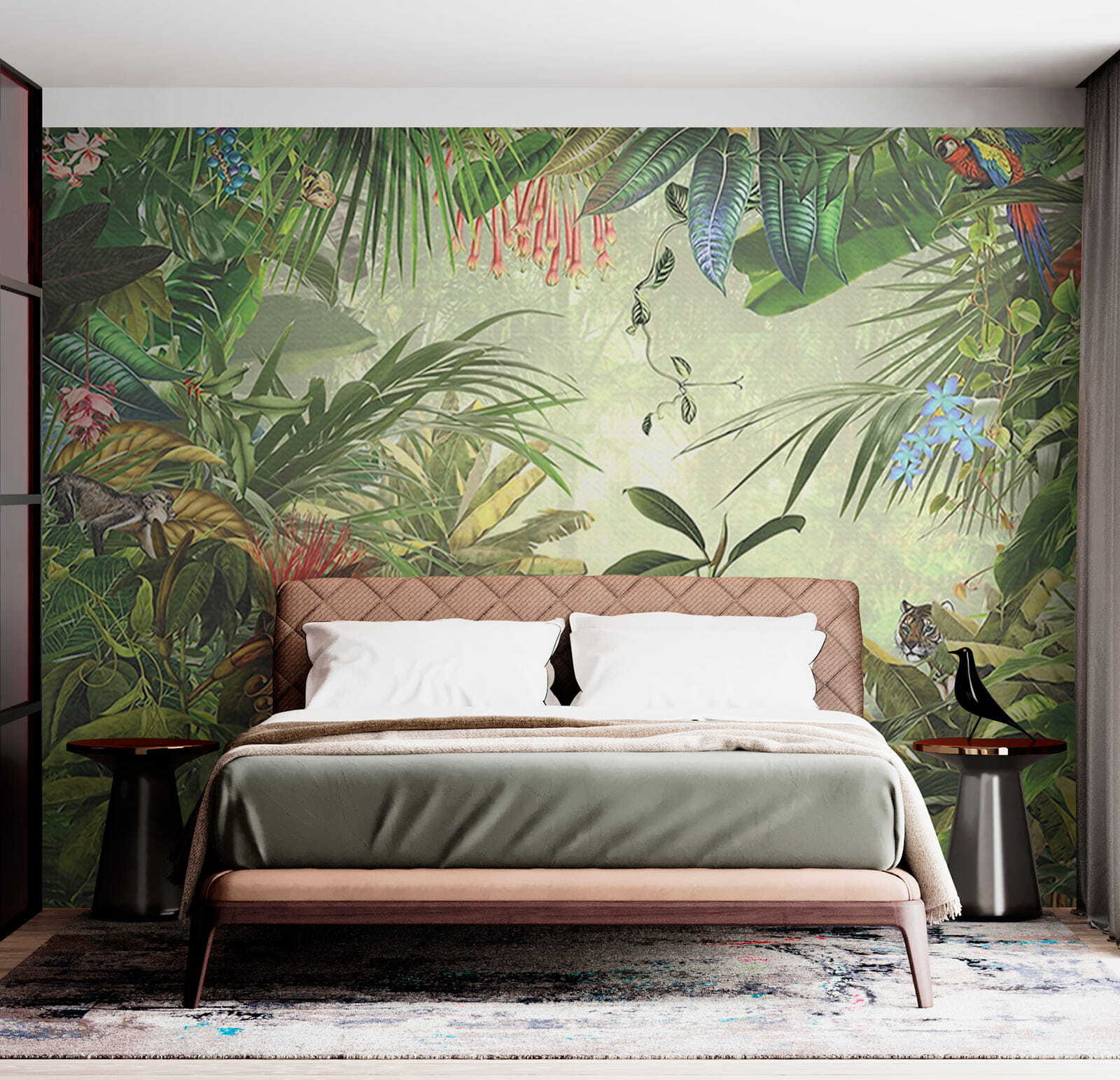 Chceli ste niekedy, aby váš obytný priestor pripomínal exotické dobrodružstvo? Táto nástenná maľba “Bujná džungľa” by mohla byť tou správnou voľbou. Predstavte si, že sa zobudíte, dáte si kávu a pozeráte priamo do pulzujúceho dažďového pralesa plného života – papagájov, opíc, tigrov… Možno budete takmer počuť šumenie listov alebo pocítite chladný vánok džungle! Farby sú jednoducho nádherne sýte – svieža zeleň, sýte zemité tóny, pestré kvety. Ideálne pre milovníkov prírody alebo pre každého, kto túži po dotyku divočiny u seba doma. Je to ako malý únik, priamo na vašej stene!🌿🦜