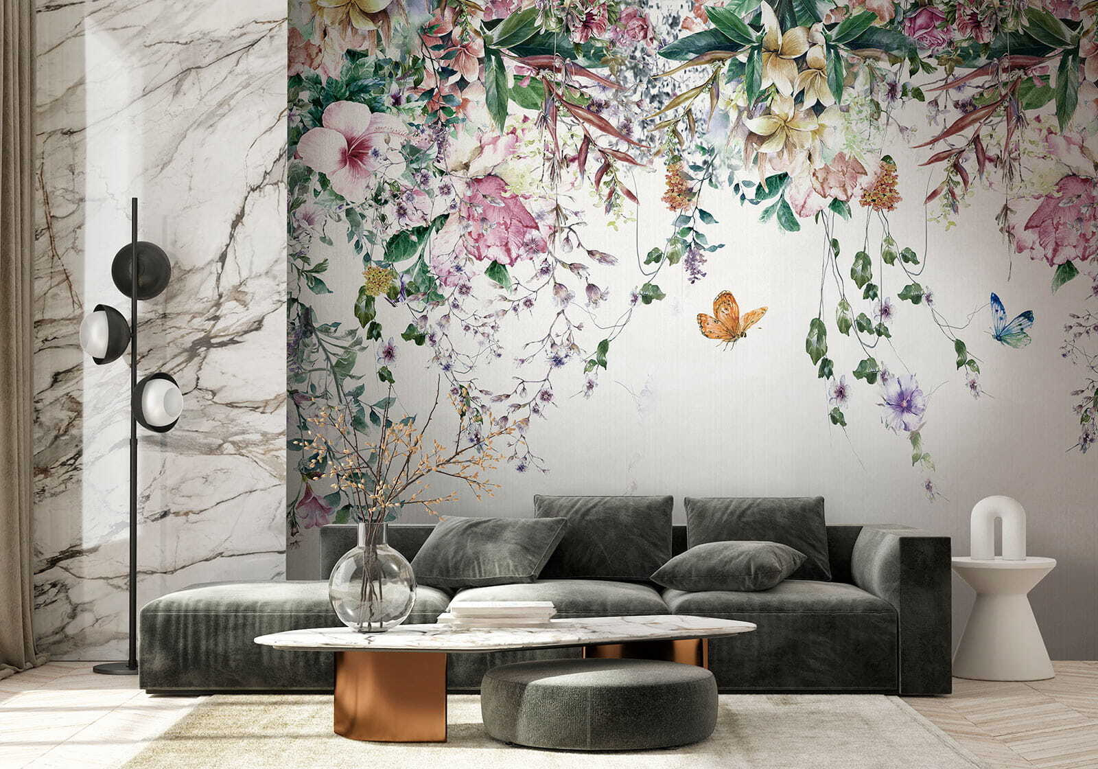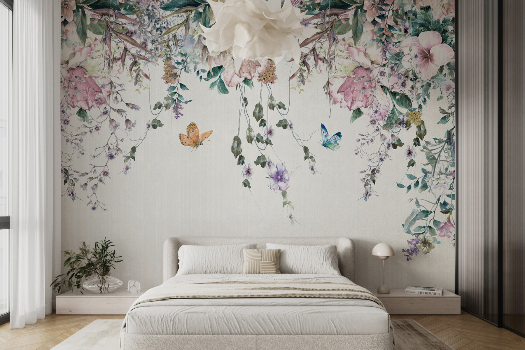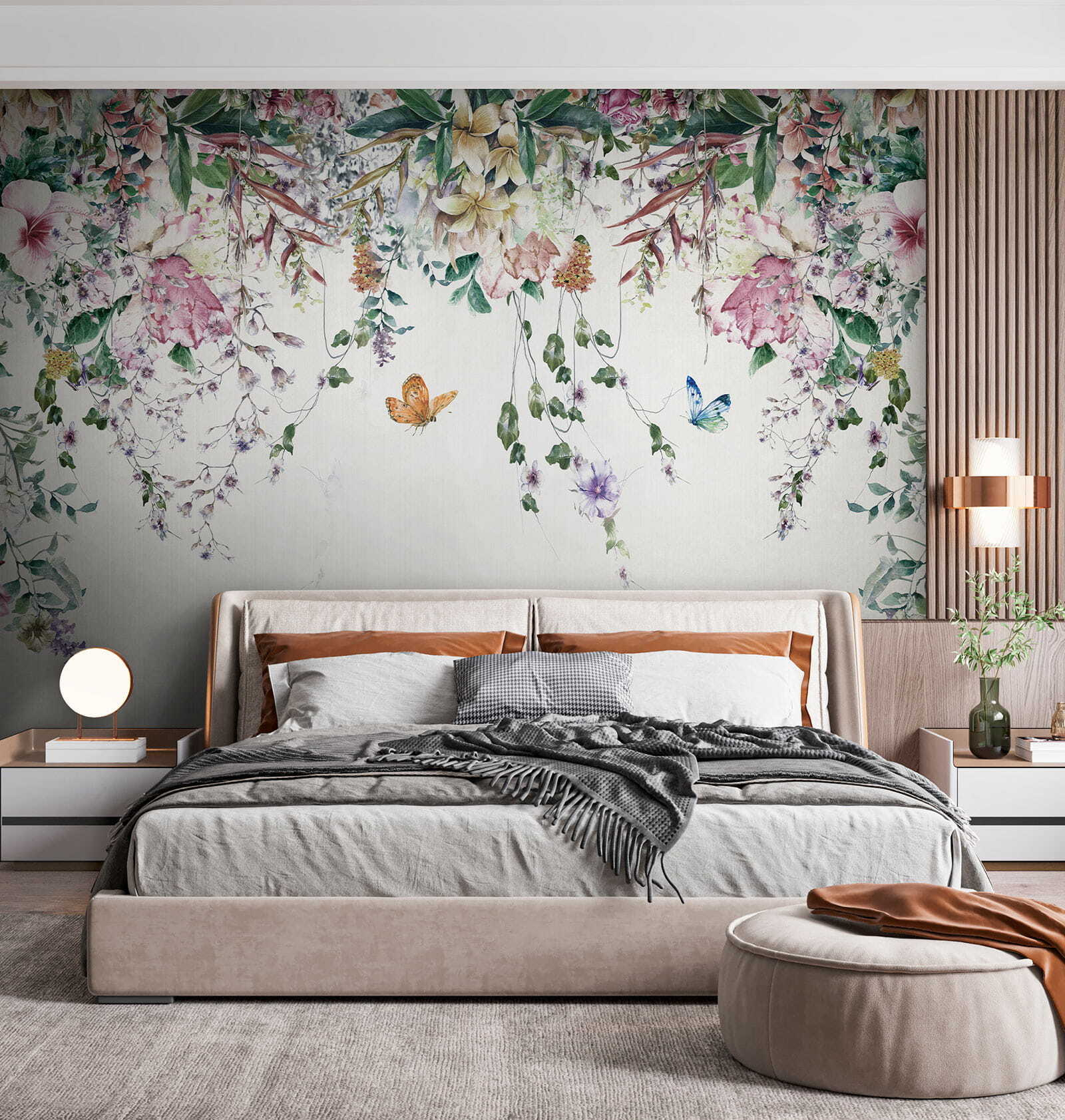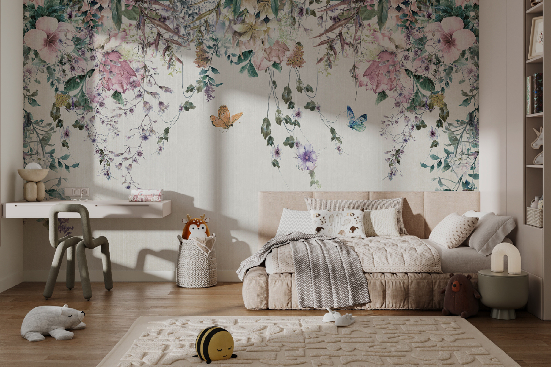 Premeňte svoj priestor na zasnenú záhradu pomocou nástennej maľby Motýle poletujú uprostred rozkvitnutého raja. Táto akvarelová fototapeta je ako vstúpiť do rozprávky – jemné motýle a žiarivé kvety tancujú po vašich stenách. Predstavte si, že vojdete do miestnosti, ktorá vám okamžite zdvihne náladu prívalom farieb a pôvabu.
