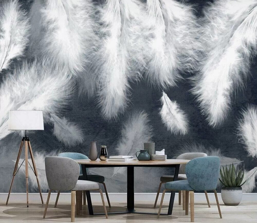 Predstavte si, že vojdete do miestnosti a okamžite pocítite pokoj – akoby ste sa vznášali na obláčiku. To je kúzlo tejto nástennej maľby “Jemné biele pierka na tmavom pozadí”. Je ideálna na vytvorenie zasneného priestoru, či už ide o útulnú spálňu alebo rozmarnú detskú izbu. Kontrast jemných bielych pierok na tmavšom pozadí pôsobí tajomne a zároveň upokojujúco – ako jemný vánok počas tichej noci.