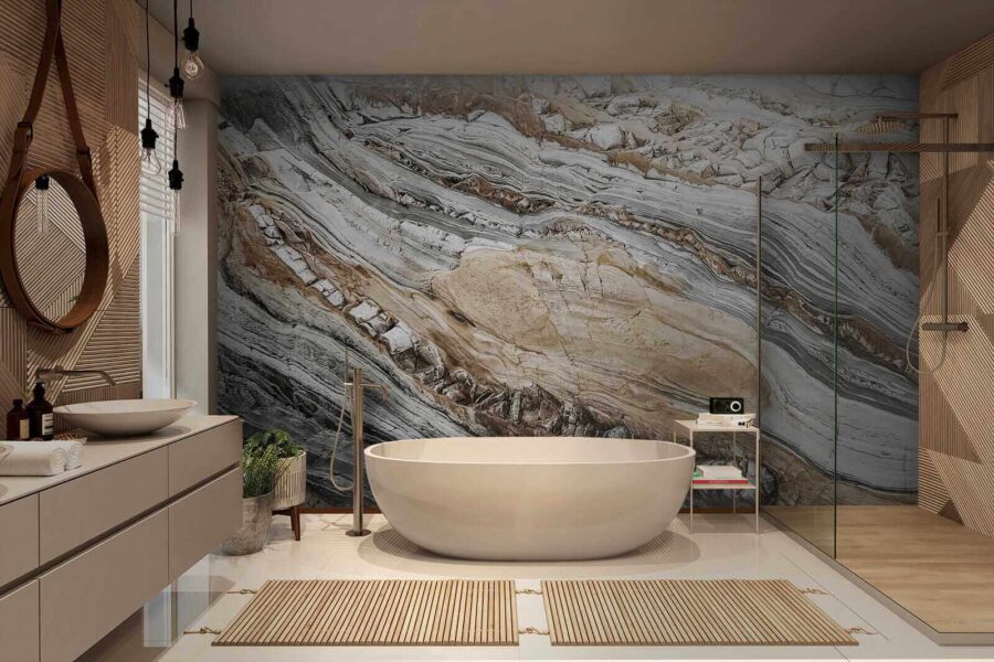 Predstavte si toto: vojdete do obývačky a BUM – je tam fascinujúca výstava prírodných vrstiev hornín v upokojujúcich zemitých tónoch. Táto nástenná maľba je ako umenie prírody, ktoré do vášho priestoru vnesie zemitú, uzemňujúcu atmosféru. Má neuveriteľný 3D efekt – takmer máte pocit, že by ste sa mohli dotknúť týchto mramorových textúr.