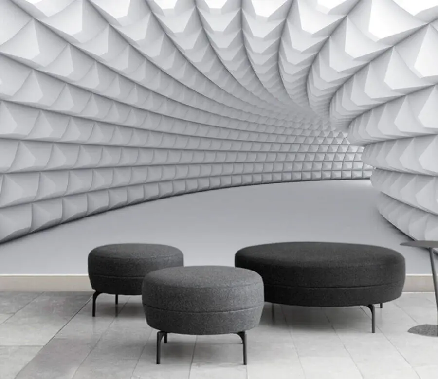 Vstúpte do fascinujúceho sveta s touto futuristickou geometrickou nástennou maľbou tunela. Predstavte si, že premeníte obyčajnú stenu na pohlcujúcu cestu – kde každý pohľad vyzerá ako ponorenie sa do vlny ostrých uhlov a hladkých kriviek. Je to ako stratiť sa v sne, kde má všetko tvar a účel. Tento dizajn je ideálny do obývačky alebo kreatívneho priestoru, vyvoláva rozhovory a inšpiruje. Predstavte si priateľov, ako ho obdivujú pri popíjaní kávy alebo len tak snívajú o iných sférach. Bez námahy dodáva hĺbku a hravú atmosféru a pozýva všetkých, aby sa naň pozreli zblízka a možno si urobili selfie alebo dve!