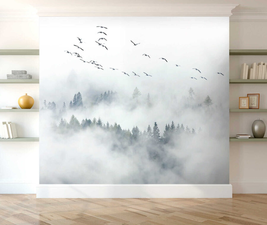 Vneste do každej miestnosti závan čerstvého vzduchu s touto rozmarnou nástennou maľbou vtákov lietajúcich na oblohe. Predstavte si to – pokojná scéna, kde sa zdá, že vznášajúce sa vtáky tancujú medzi mrakmi, čím vytvárajú pokojnú atmosféru, ktorá je ideálna do spální alebo útulných čitateľských kútikov. Je to ako vyjsť na svieži ranný vzduch bez toho, aby ste museli opustiť svoj domov. Predstavte si, ako popíjate kávu a vychutnávate si tento snový únik. Vďaka jemným odtieňom ho ľahko skombinujete so svojím interiérom, zatiaľ čo jemné obrázky nabádajú k pokoju a inšpirácii. Cítite povznesenie? Nie je to len nástenná maľba, je to malý kúsok pokoja.