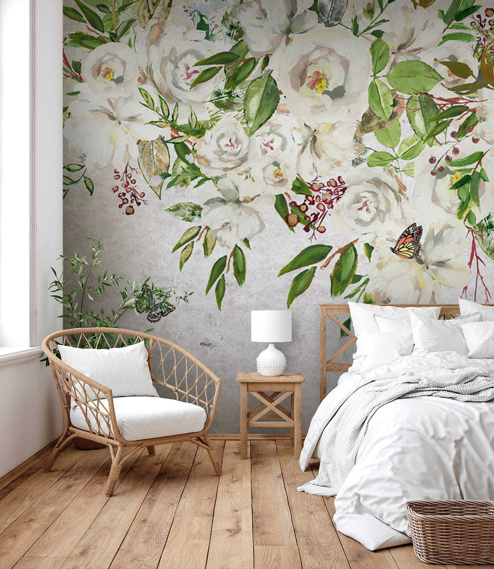 Premeňte svoj priestor s touto nádhernou nástennou maľbou bielych kvetov a poletujúcich motýľov. Je to ako vstúpiť do tajnej záhrady bez otravného hmyzu – pokiaľ nerátate tieto očarujúce motýle! Predstavte si to: jemné okvetné lístky a žiarivá zeleň pokrývajúce vaše steny a prinášajúce do vášho domova jemný vánok prírody. Táto maľba vyžaruje pokoj, ideálna pre útulný kútik na čítanie alebo pokojnú spálňu. Predstavte si, ako sa zviniete s dobrou knihou, obklopení upokojujúcou atmosférou tohto umeleckého diela. Nie je to len dekorácia, je to zážitok, ktorý čaká na rozkvet! Nechajte vaše steny rozprávať príbeh.