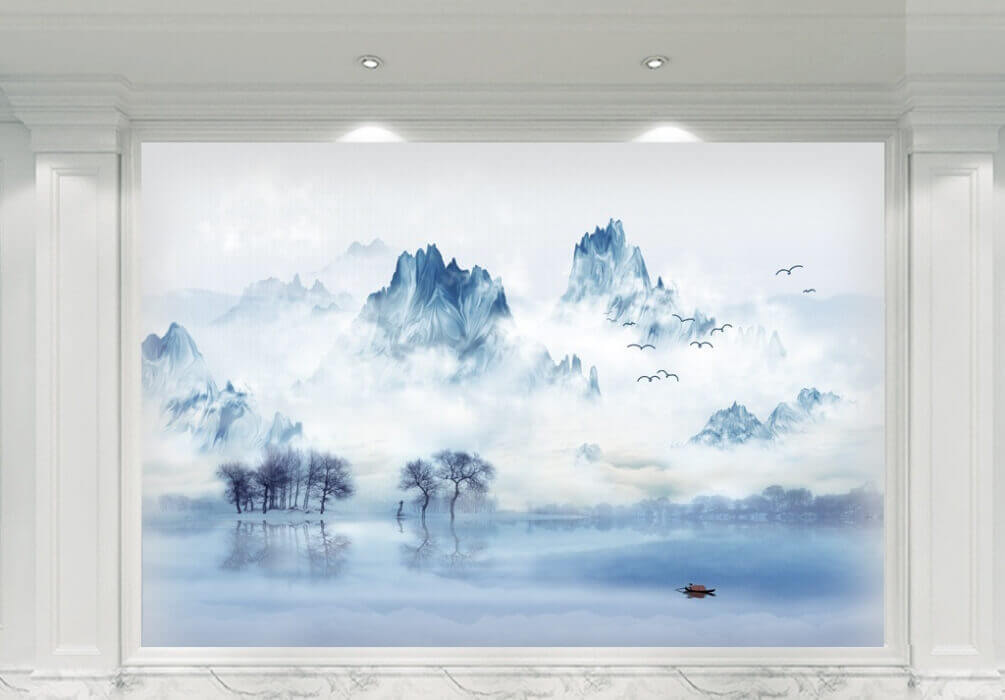 Premeňte svoj priestor s touto úžasnou nástennou maľbou, ktorá zachytáva pokojné jazero obklopené majestátnymi horami. Predstavte si upokojujúce modré a jemné sivé odtiene, ktoré vašu izbu zahalia do pokojného objatia. Je to ako priniesť kúsok prírody dovnútra, bez hmyzu a nepredvídateľného počasia. Predstavte si, že sa každý deň prebúdzate s týmto výhľadom – možno dokonca popíjate kávu a zamýšľate sa nad životom, ako keby to bola hlboká filozofická otázka. Je to tiež skvelý začiatok konverzácie! Priatelia sa budú cítiť uvoľnení a inšpirovaní, a kto vie, možno to vyvolá pár kreatívnych nápadov alebo dokonca spontánny výlet do hôr. Ideálne do spální, obývacích izieb alebo kdekoľvek, kde potrebujete trochu prírodnej krásy. Nechajte sa touto tapetou preniesť vždy, keď potrebujete trochu uniknúť!