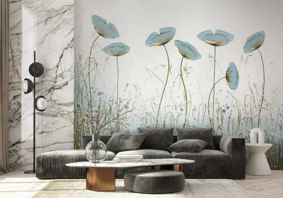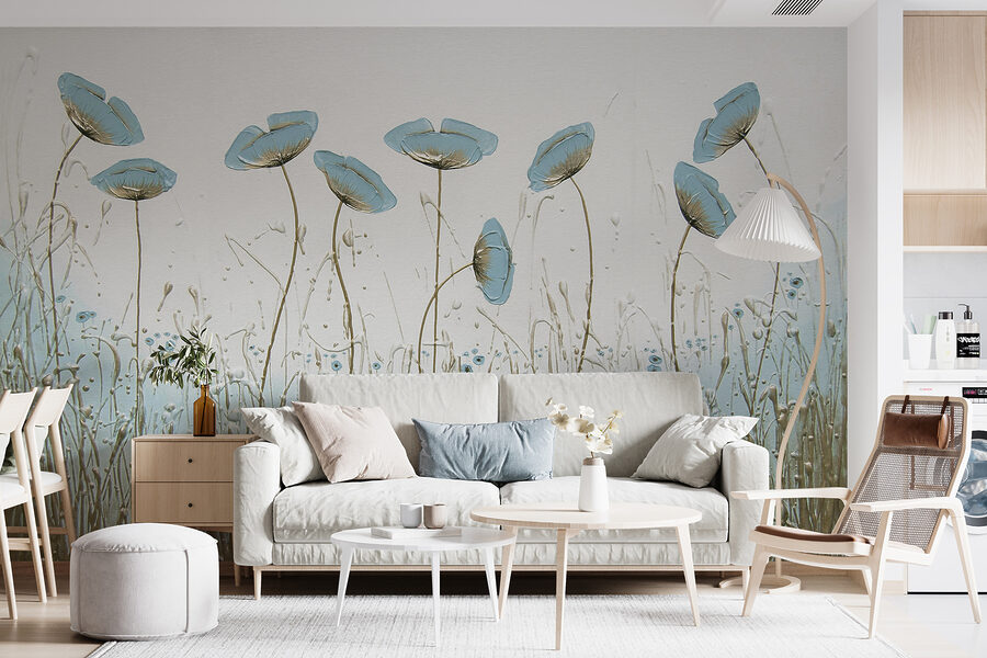 Chceli ste niekedy vniesť do interiéru nádych prírody? Táto úžasná nástenná maľba môže byť práve vašou odpoveďou. Predstavte si to – jemné modré kvety, ktoré sa jemne kolíšu, akoby cítili jemný vánok, ktorý sa cez ne preháňa. Okamžite upokojujúce, však?
