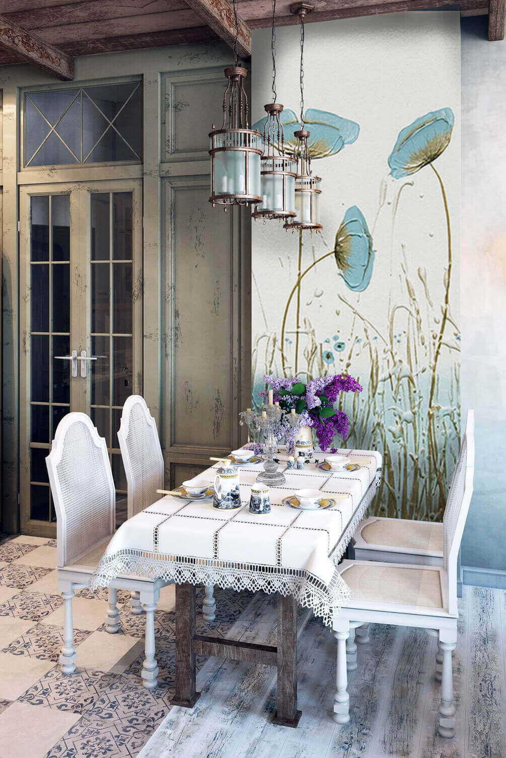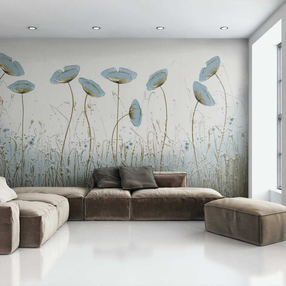Chceli ste niekedy vniesť do interiéru nádych prírody? Táto úžasná nástenná maľba môže byť práve vašou odpoveďou. Predstavte si to – jemné modré kvety, ktoré sa jemne kolíšu, akoby cítili jemný vánok, ktorý sa cez ne preháňa. Okamžite upokojujúce, však?