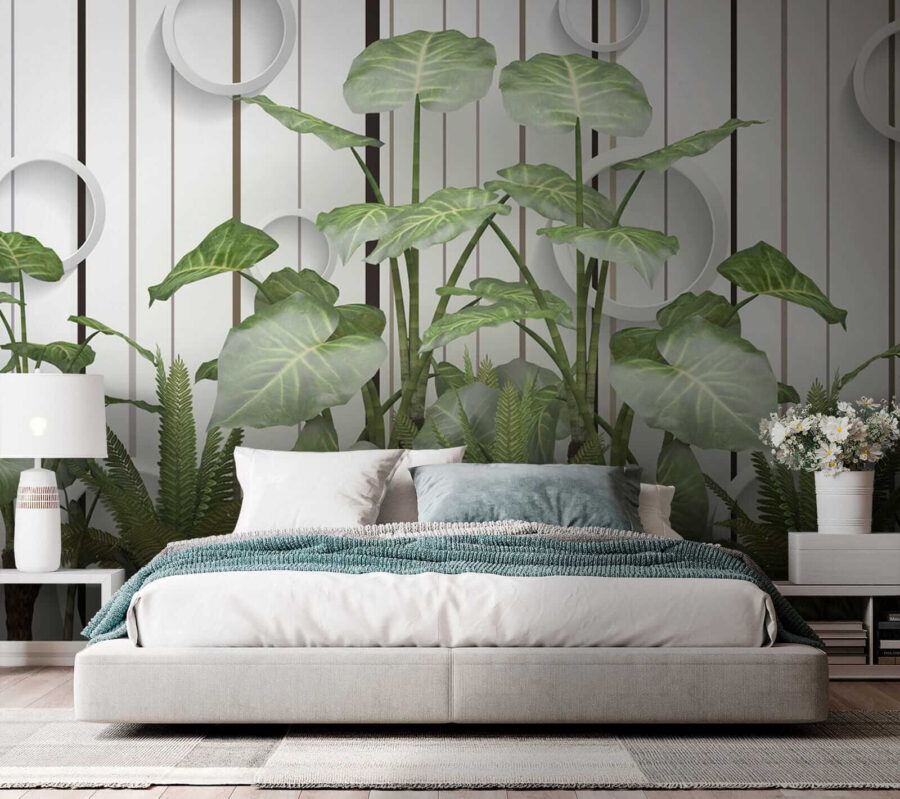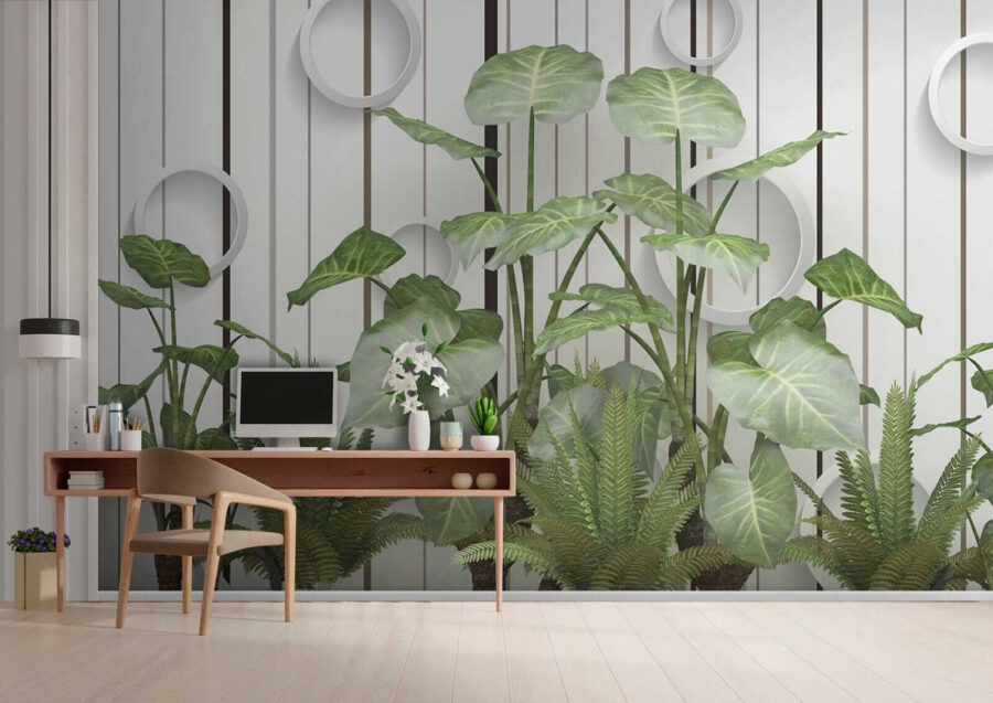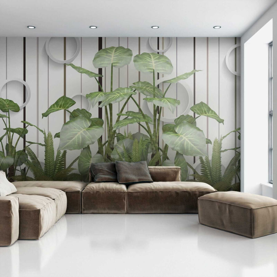 Predstavte si to: steny pokryté živými, sviežimi listami, ktoré vystupujú na pozadí týchto elegantných pruhov… vážne, je to ako mať vo svojej obývačke nádych džungle bez vlhkosti! Táto nástenná maľba “Svieže listy na pruhovanej stene” bez námahy spája upokojujúcu esenciu prírody s moderným nádychom. Či už ste milovníci rastlín s mierne čiernym palcom, alebo len túžite po príchuti prírody, táto nástenná maľba vám kryje chrbát – zalievanie nie je potrebné. Predstavte si, že ležíte na pohovke a cítite, ako vás oblieva svieža zelená atmosféra… jednoducho to oživí celú miestnosť! Navyše tie cool kruhové akcenty dodávajú nepredvídateľný, 3D štýl – hovoríme o pútavosti. Je ideálny na vnesenie kúska šarmu a pokoja do každého priestoru. Nie je to len nástenná maľba, ale aj podnet na rozhovor, zlepšenie nálady, malý kúsok listnatého raja. 🌿